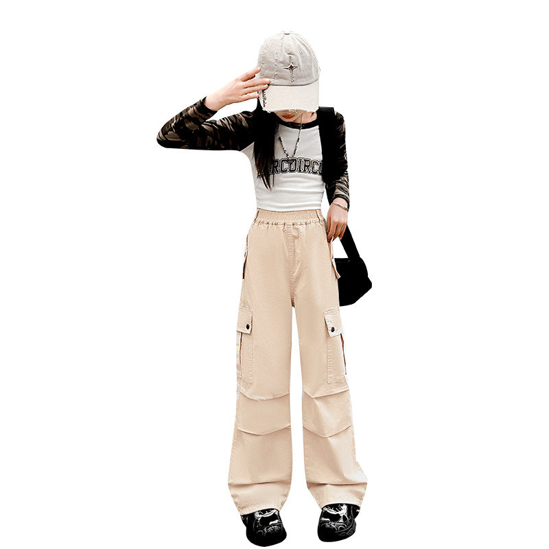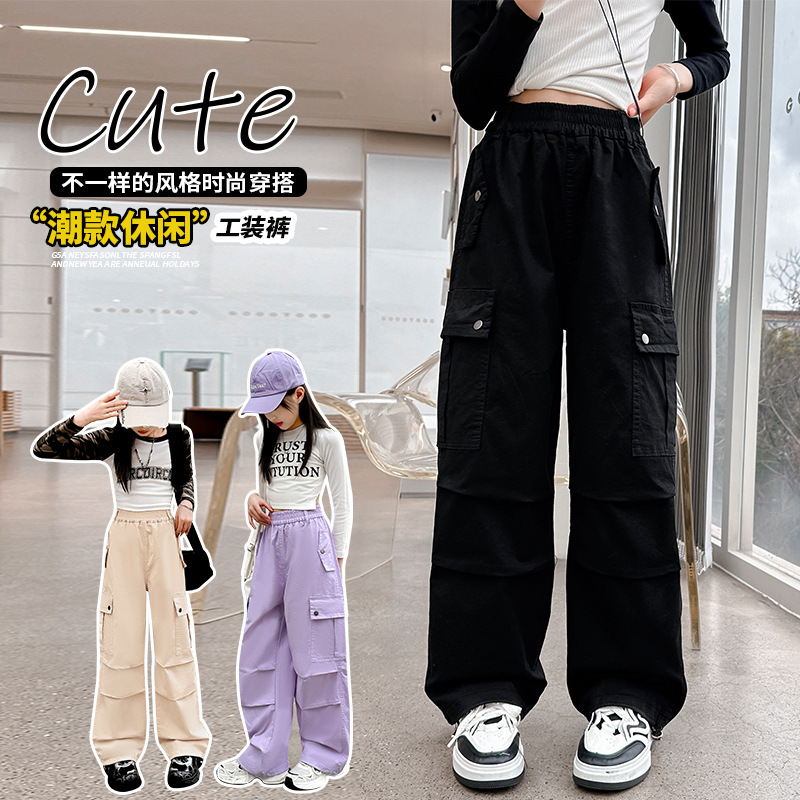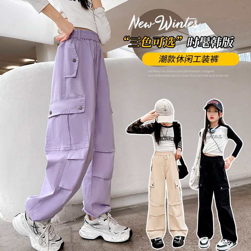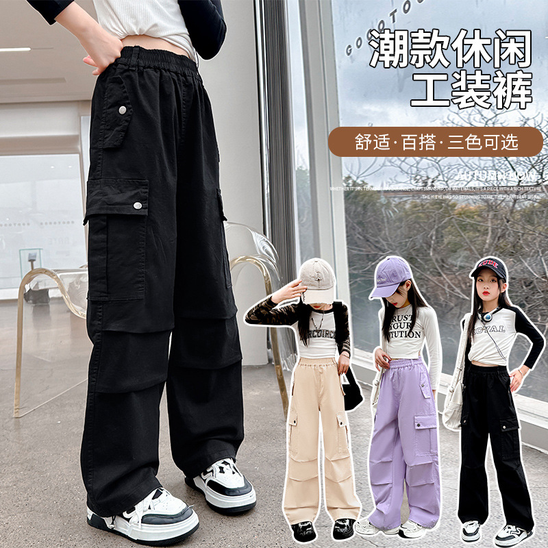 女童工装裤新款春装洋气街舞宽松休闲阔腿裤中大童春款长裤子