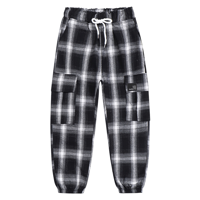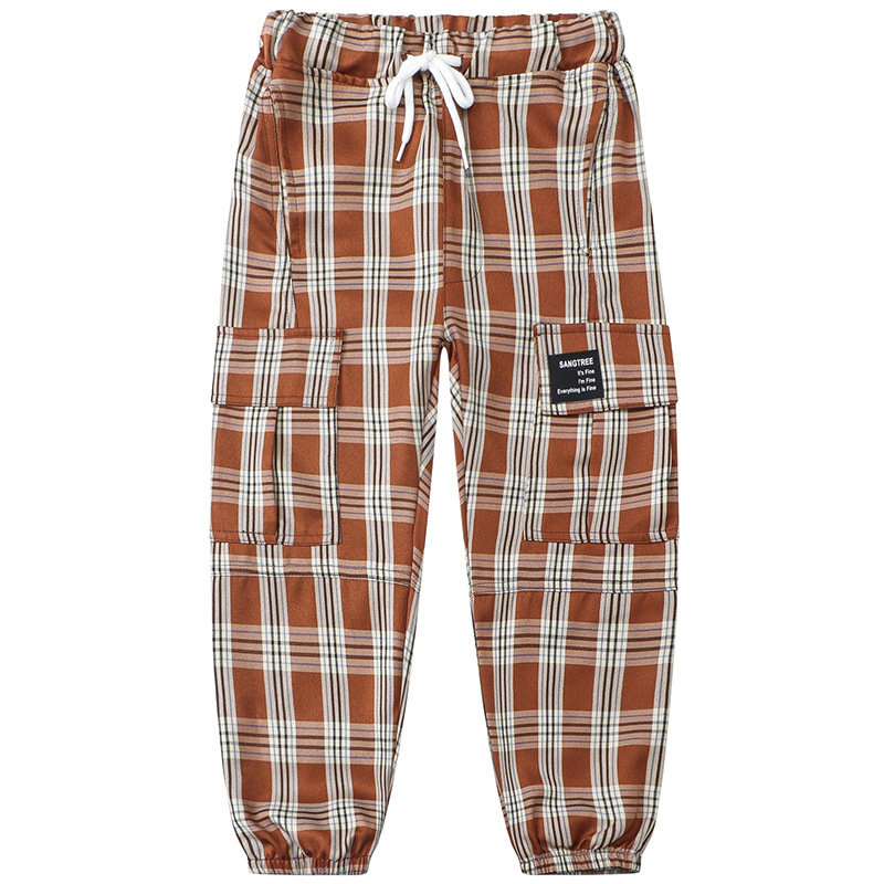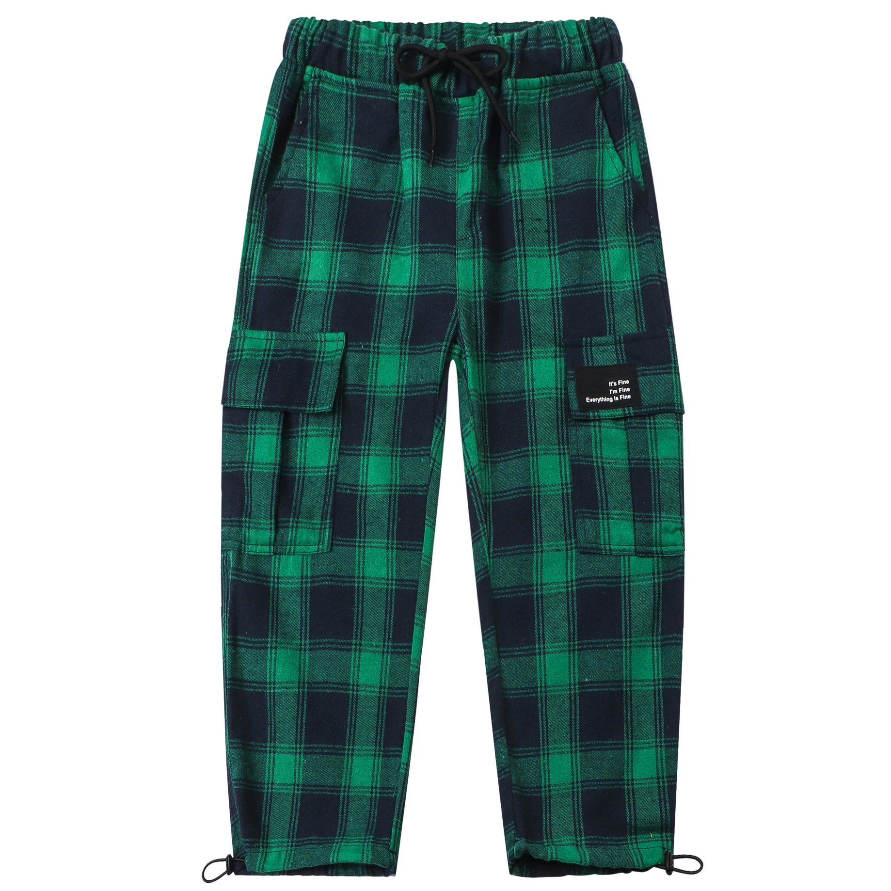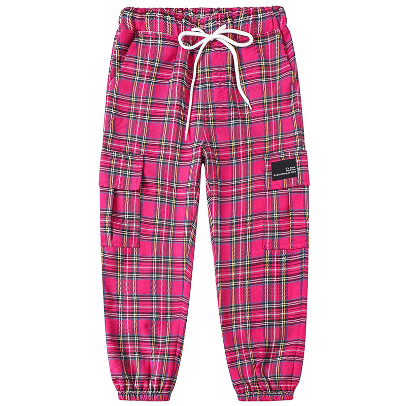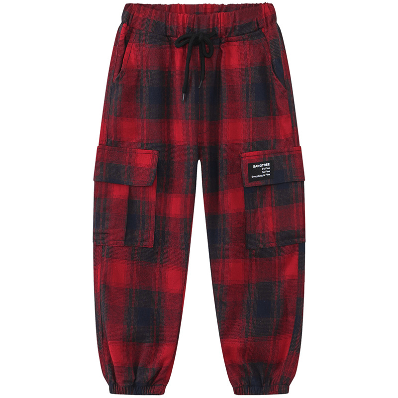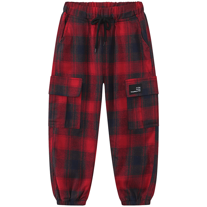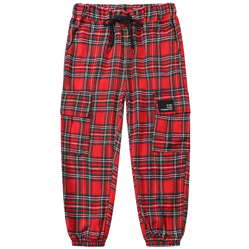 亚马逊圣诞小童儿童工装裤格子元素男童卫裤新潮前卫女童