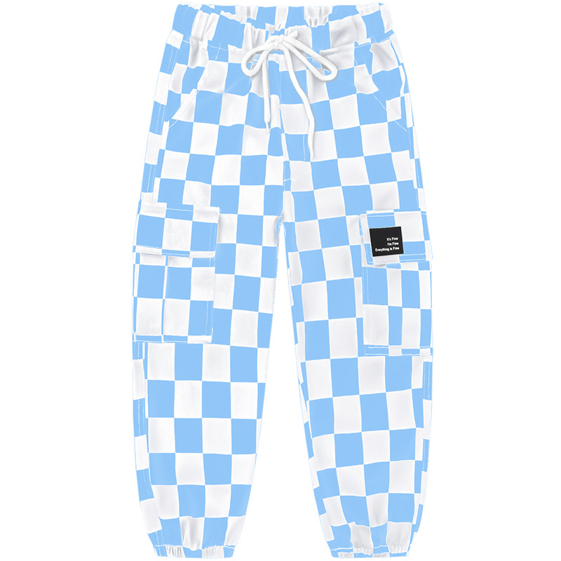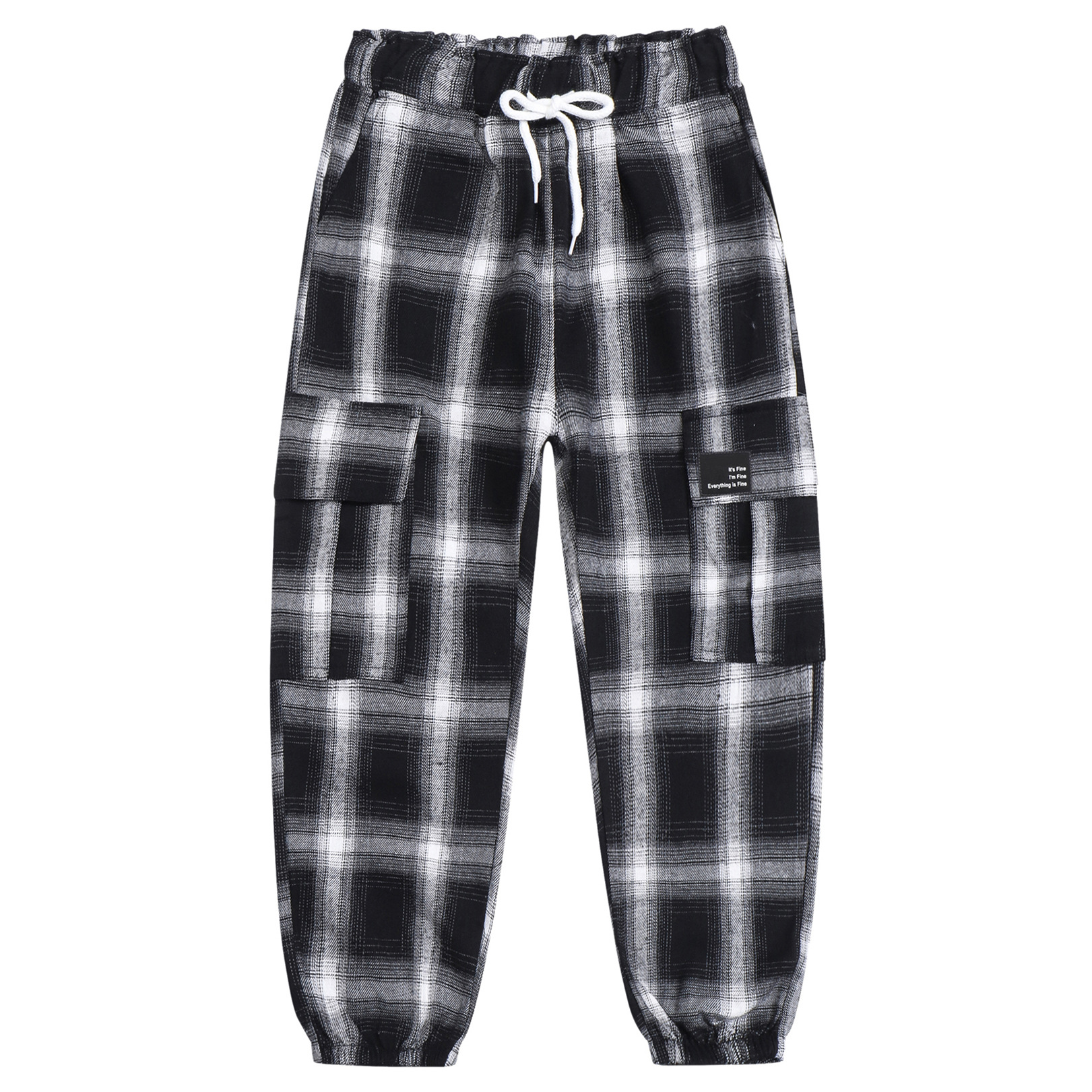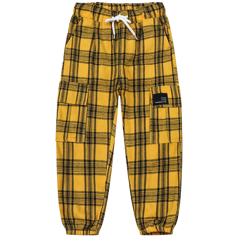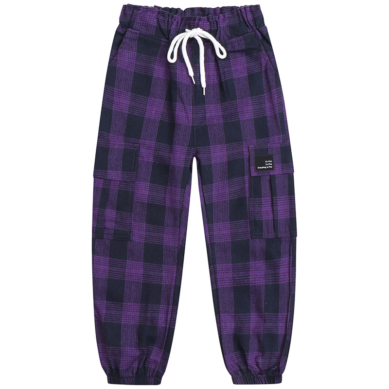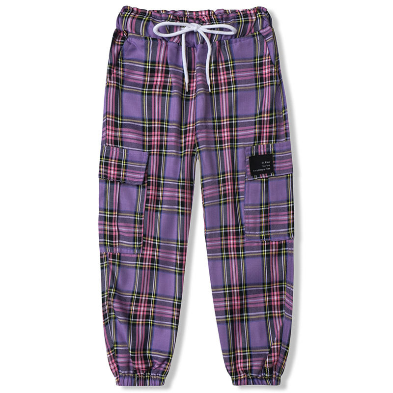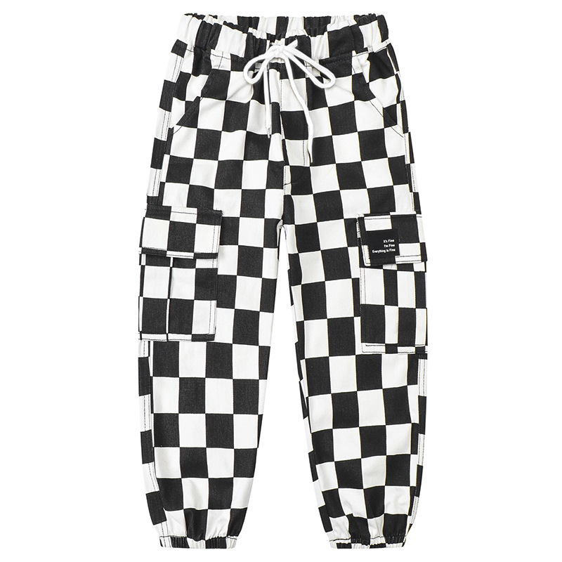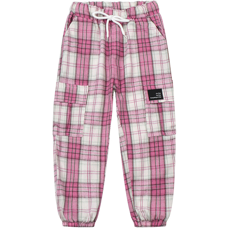 亚马逊圣诞小童儿童工装裤格子元素男童卫裤新潮前卫女童