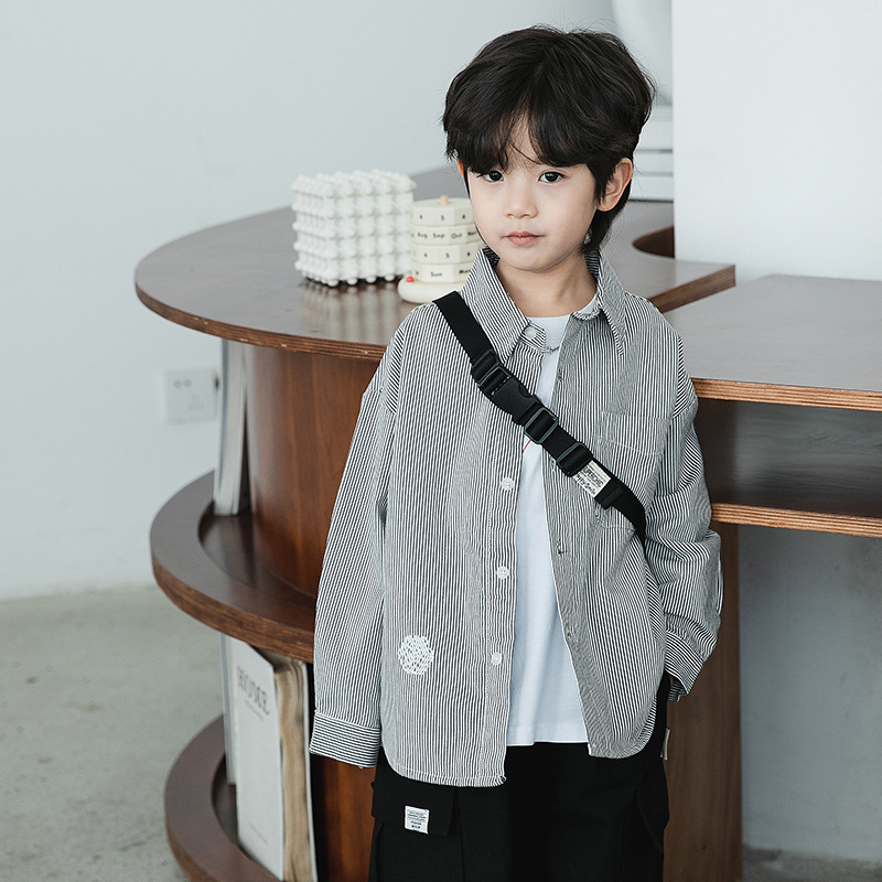 男童条纹衬衫外套春秋款儿童春装中小童春季日系衬衣男孩上衣