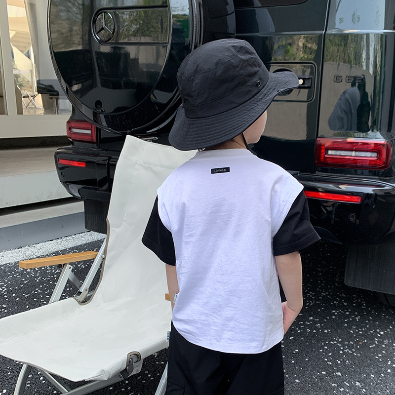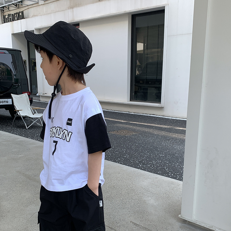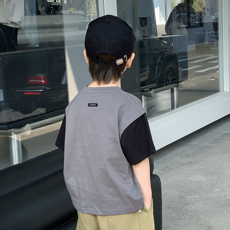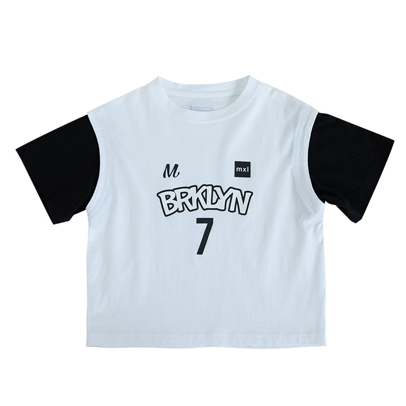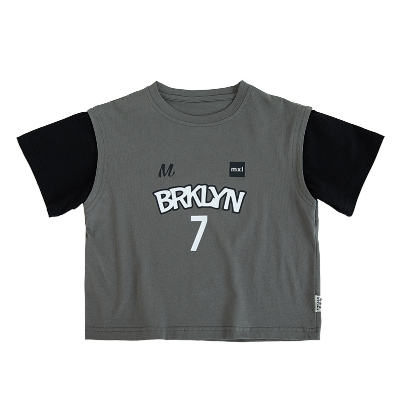 童装儿童夏季新款韩版字母印花假两件短袖篮球服男童T恤薄款