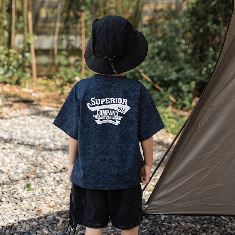 儿童夏装男童短袖T恤个性蜡染衣服小男孩夏天上衣童装半袖宽松潮