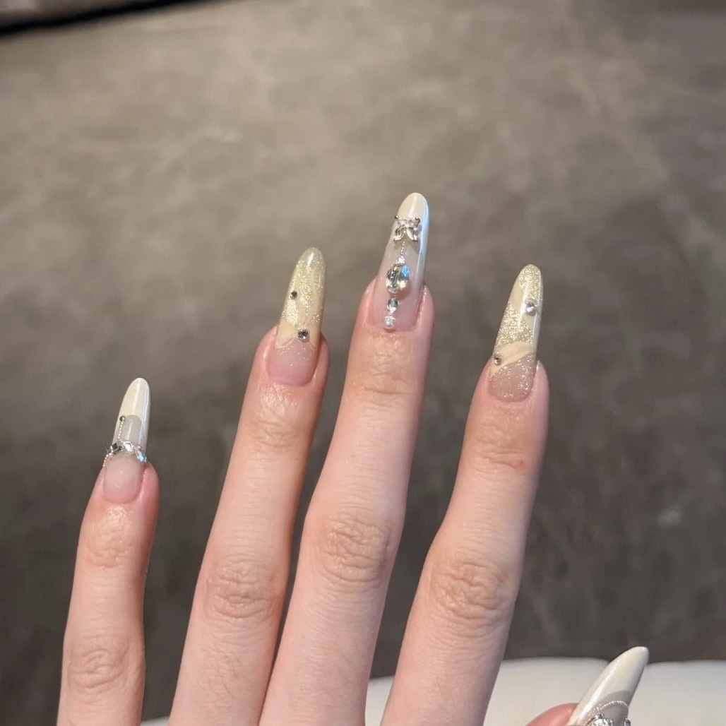 纯手工穿戴甲优雅起义清冷气质千金法式猫眼爆闪高级感显白美甲贴
