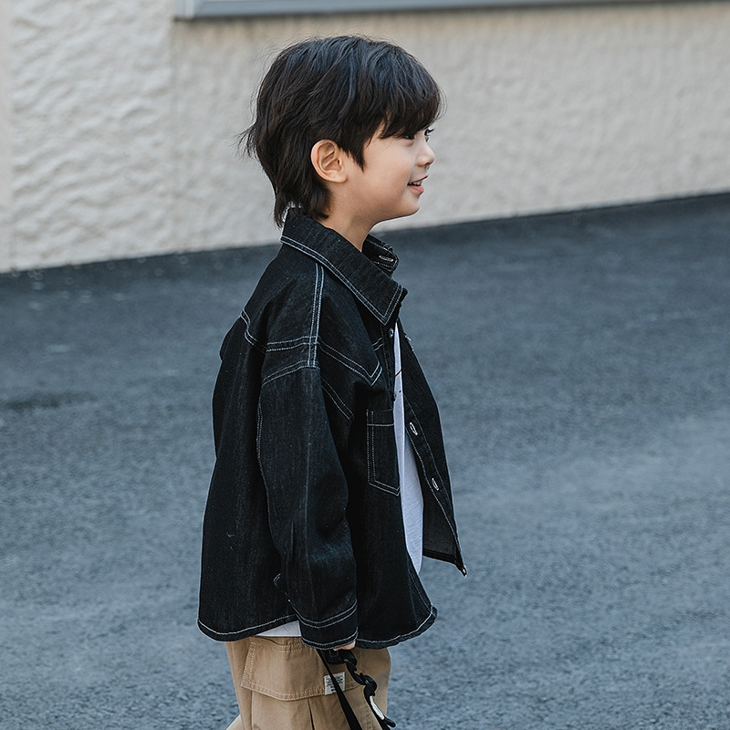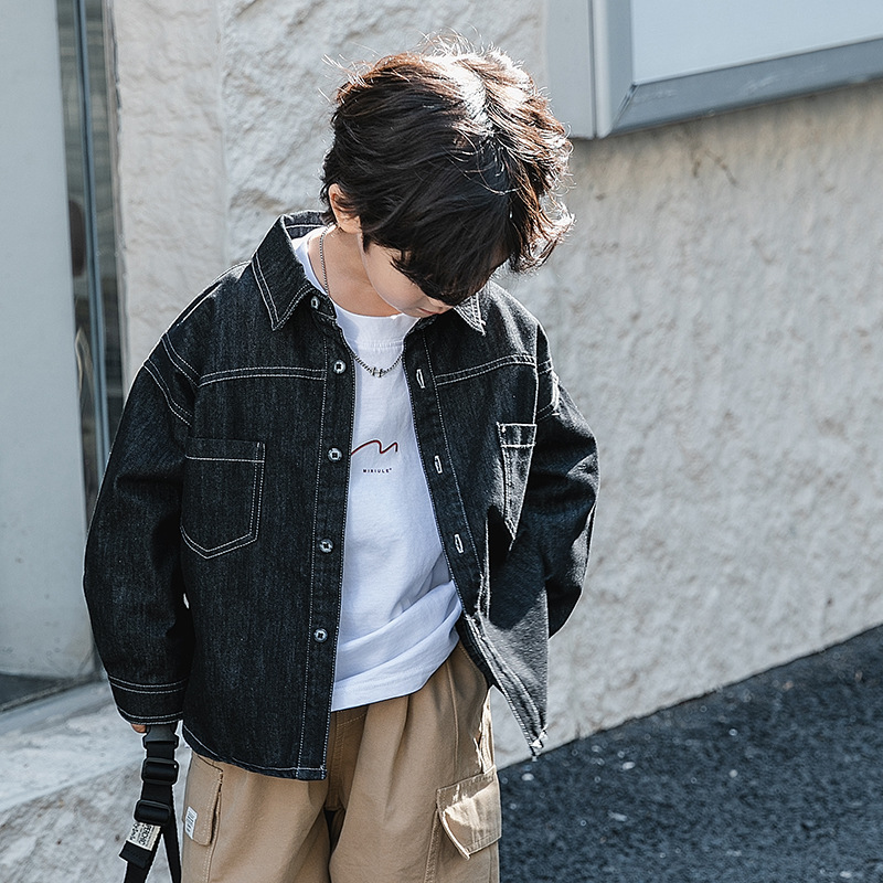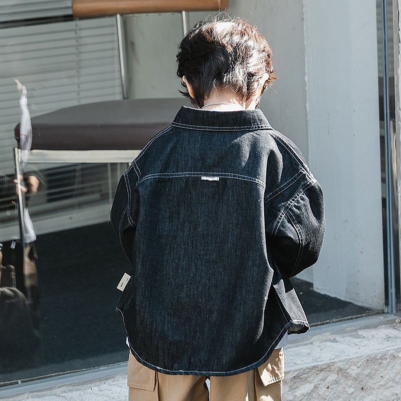 男童牛仔衬衫春秋款新款痞帅潮小童长袖衬衣外套男孩春装上衣