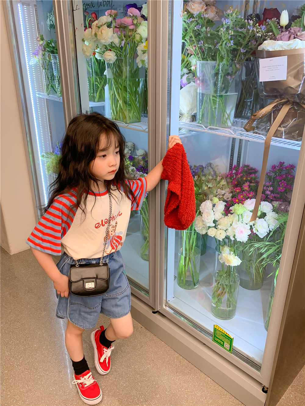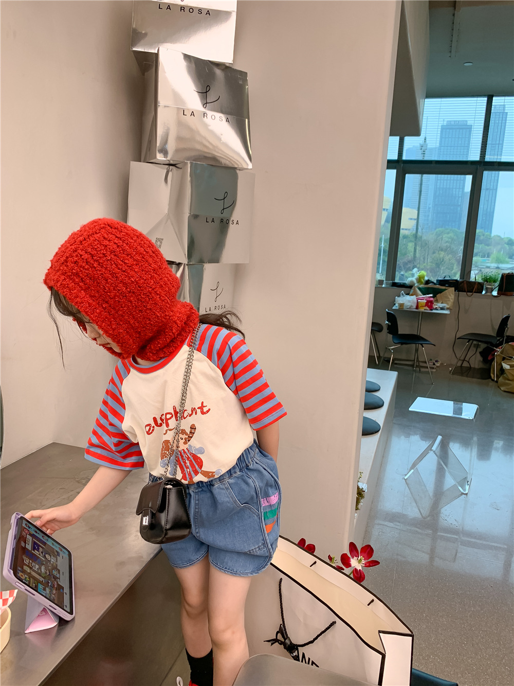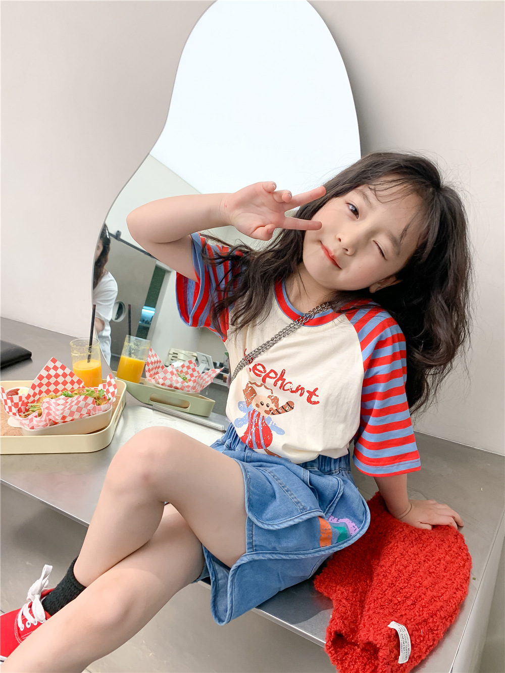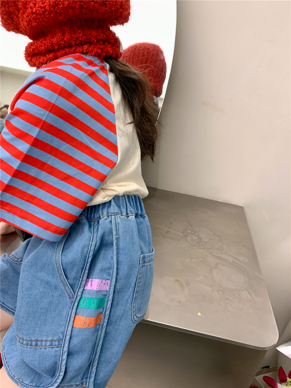 夏季新款童装 女童彩条牛仔短裤韩版儿童夏款洋气百搭牛仔裤
