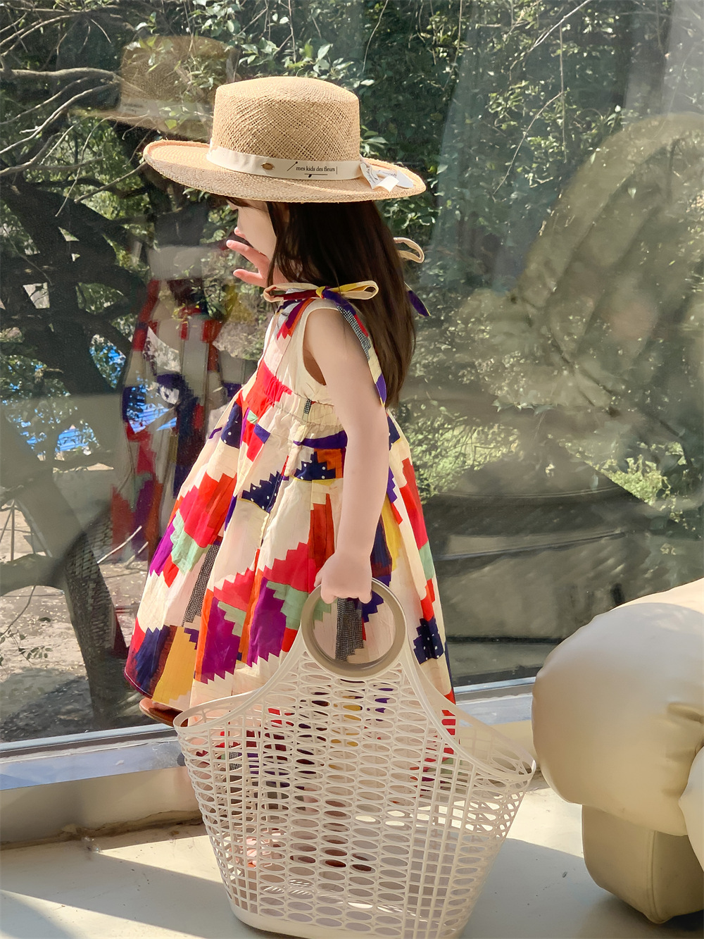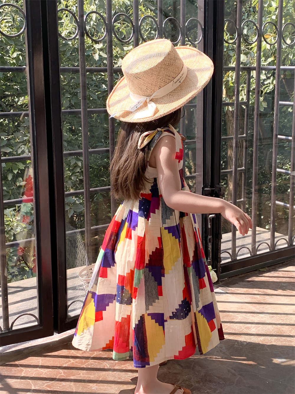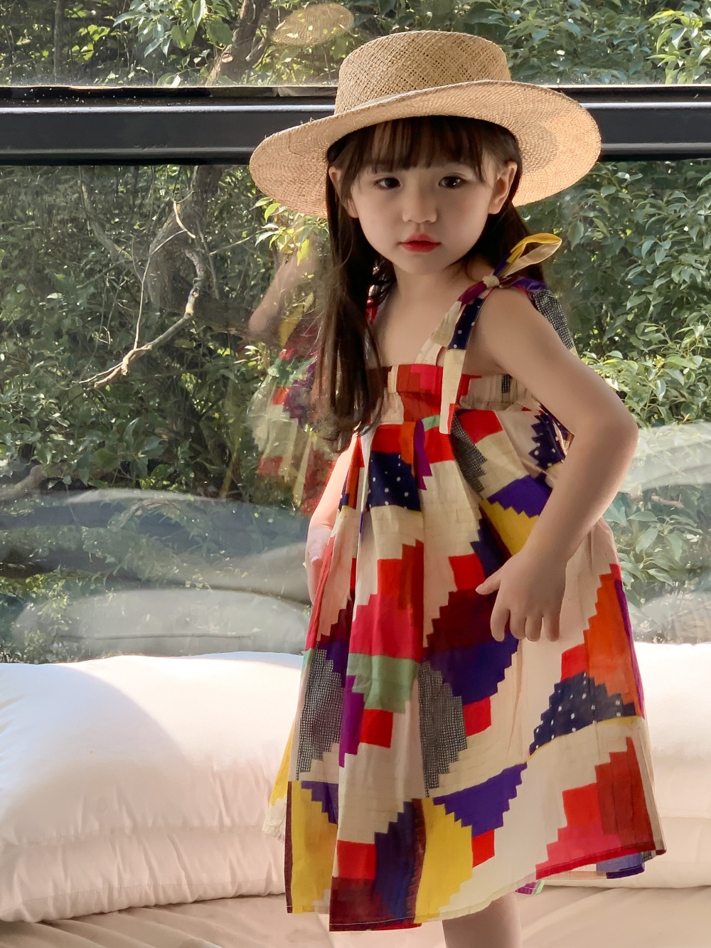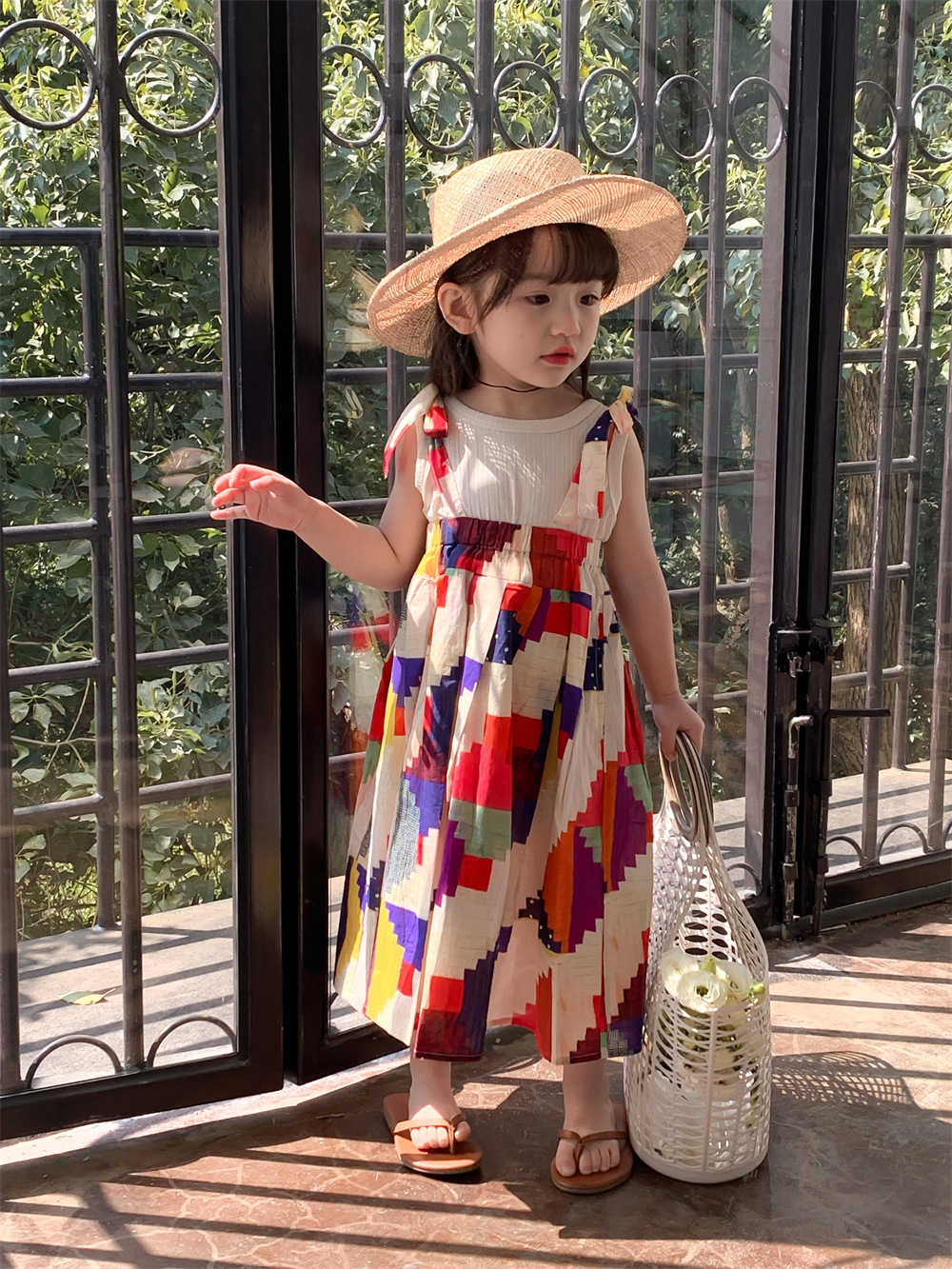 夏季新款童装 女童洋气无袖针织背心+彩色名族风吊带裙两件套