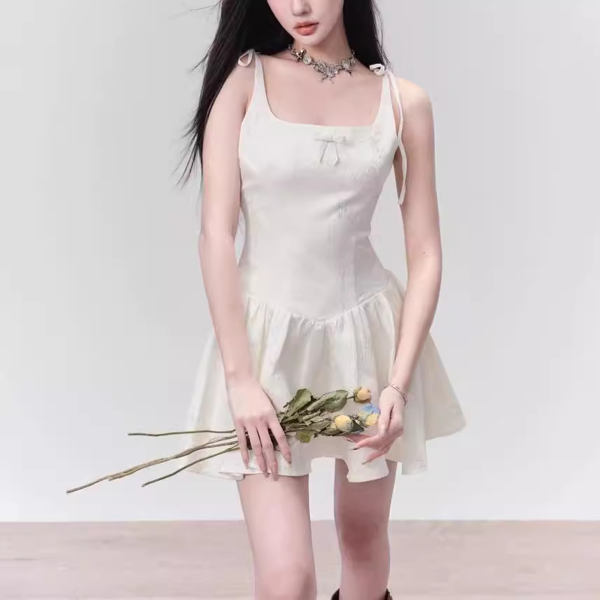 气质名媛宴会生日party小礼服裙法式高档感白色吊带连衣裙女夏春