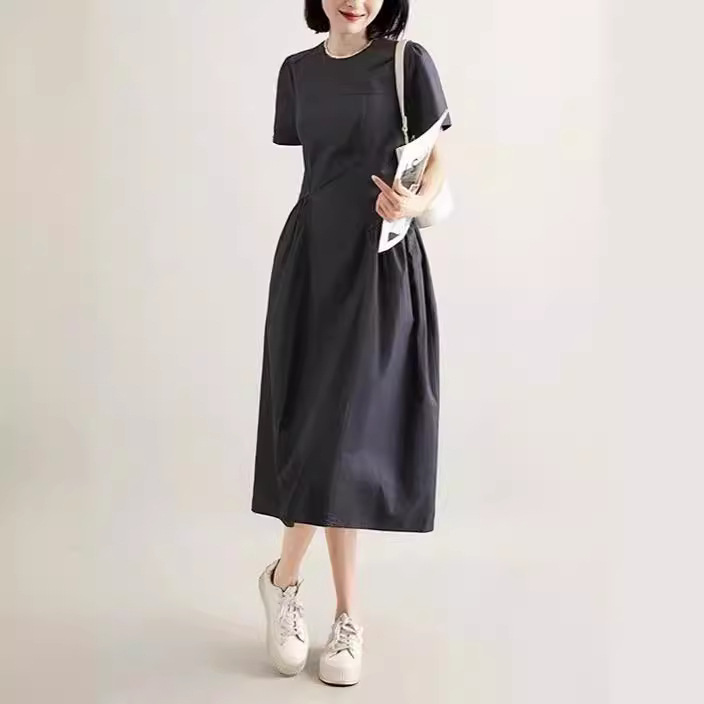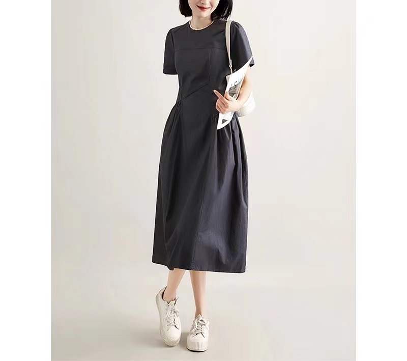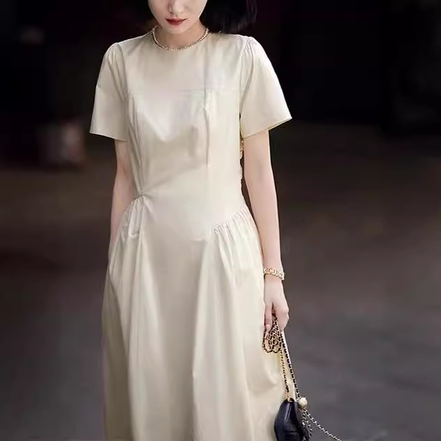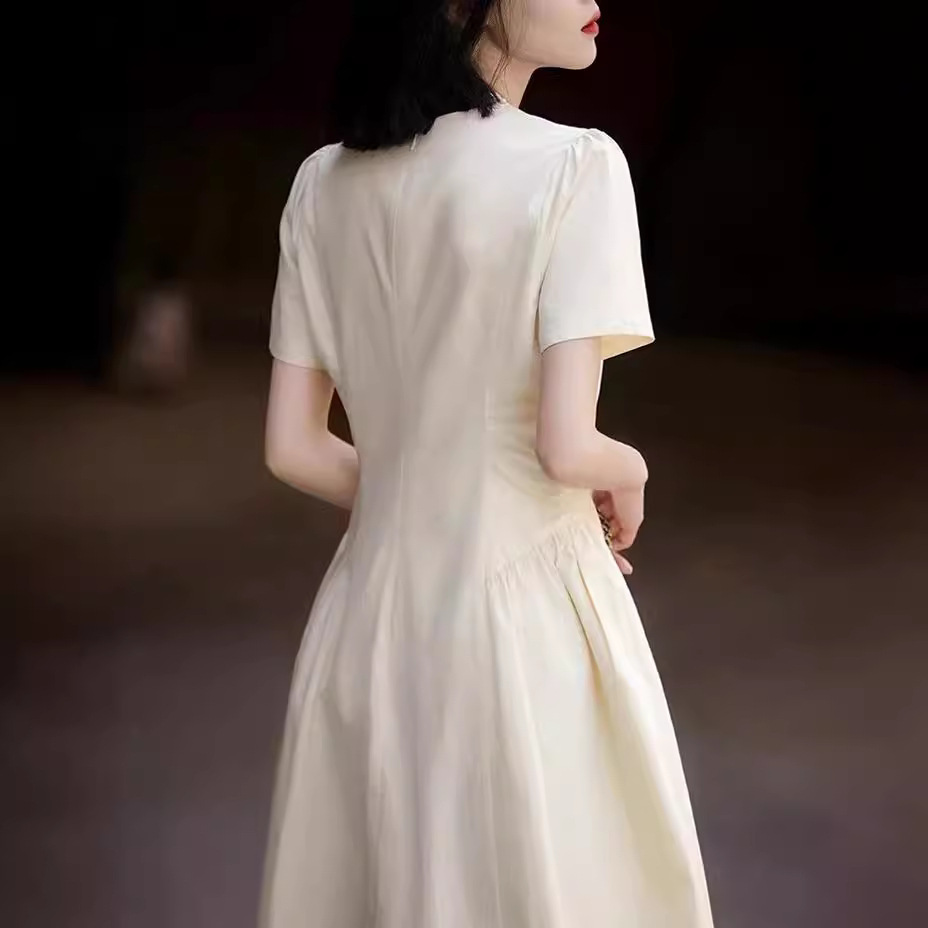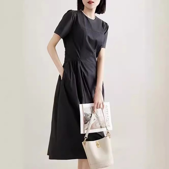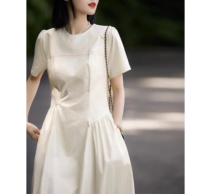 设计感法式通勤全棉褶皱收腰气质连衣裙
