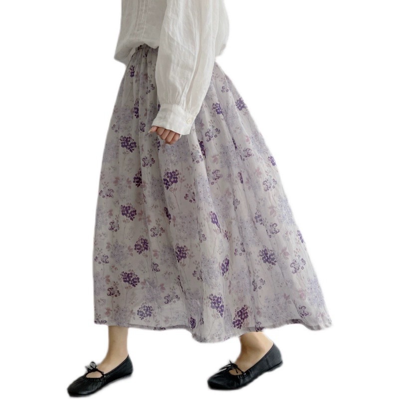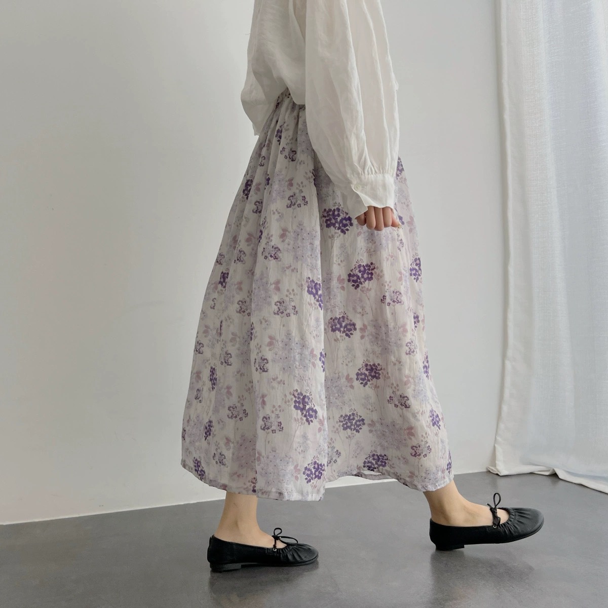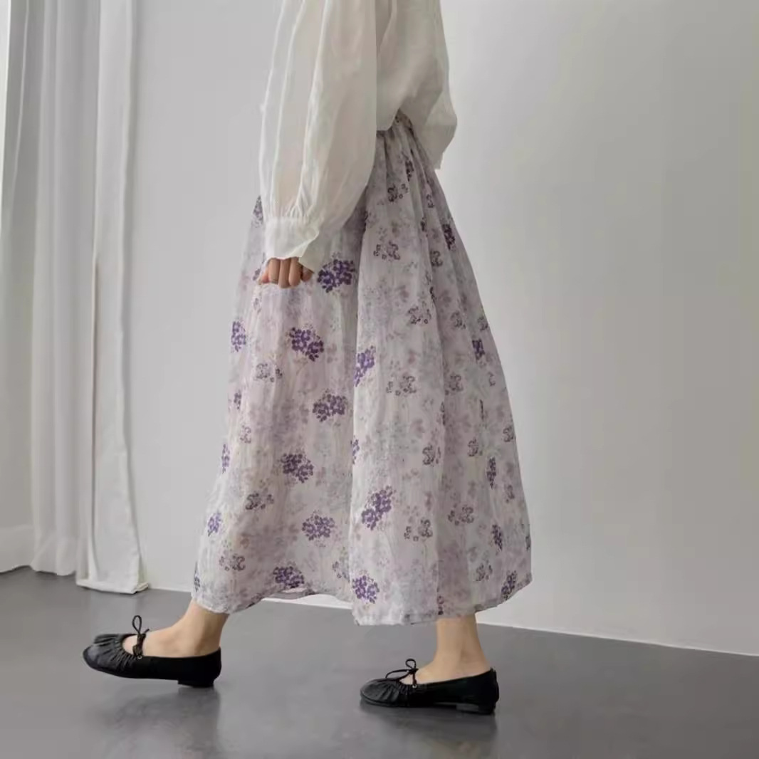 七月与花!高支定染性感精纺天然苎麻A字中长款半身裙