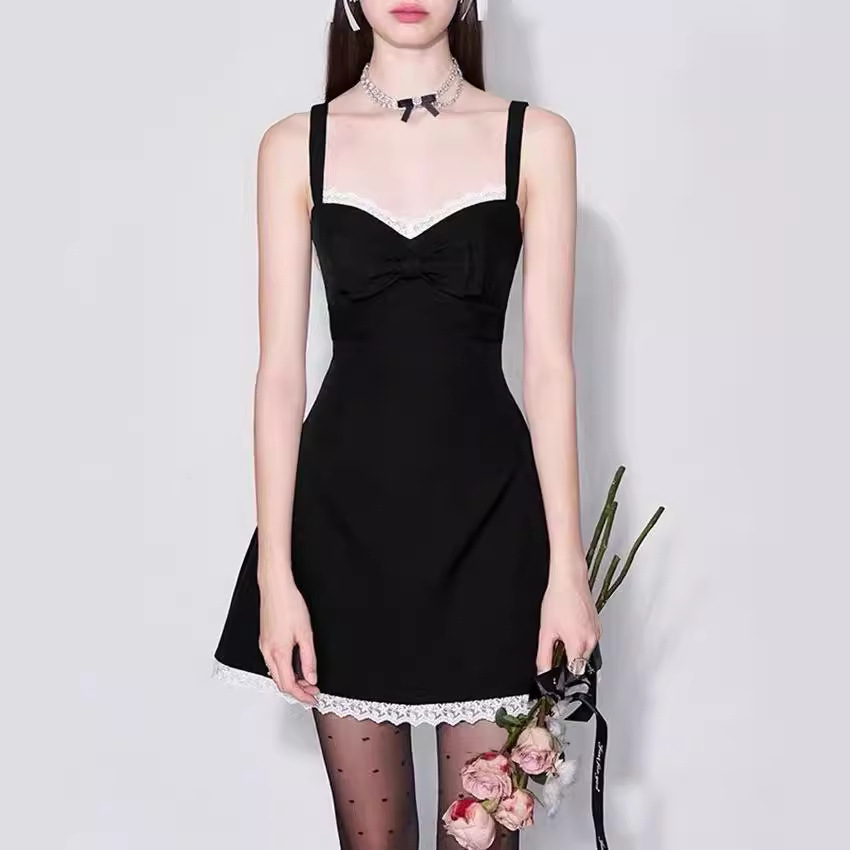 性感镂空吊带挂脖露背甜辣系带显瘦修身连衣裙女