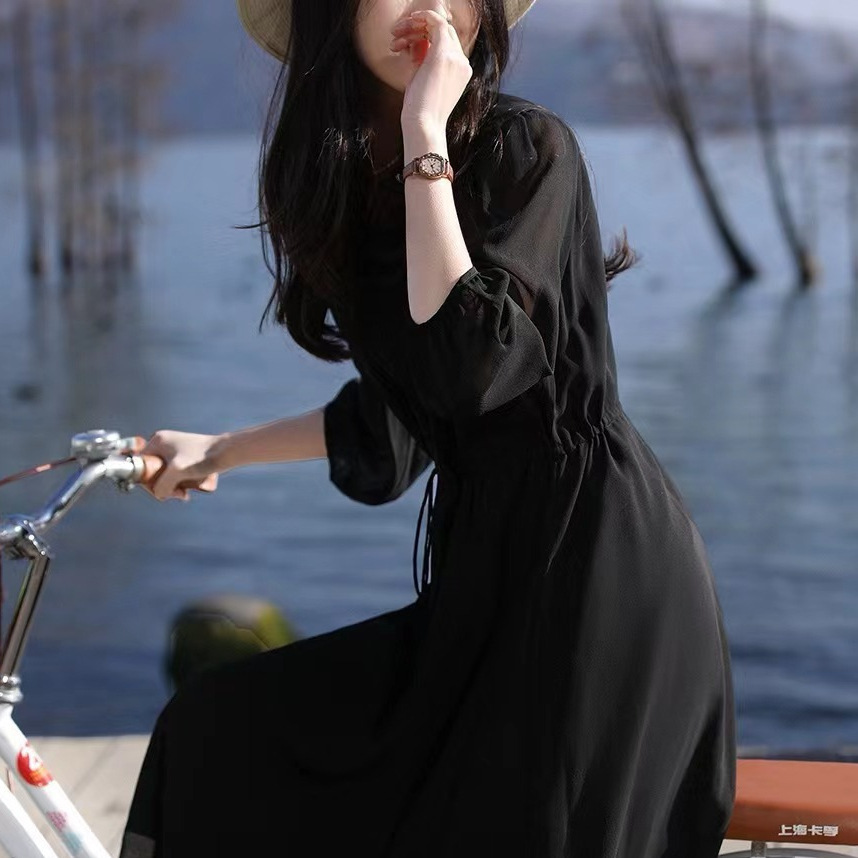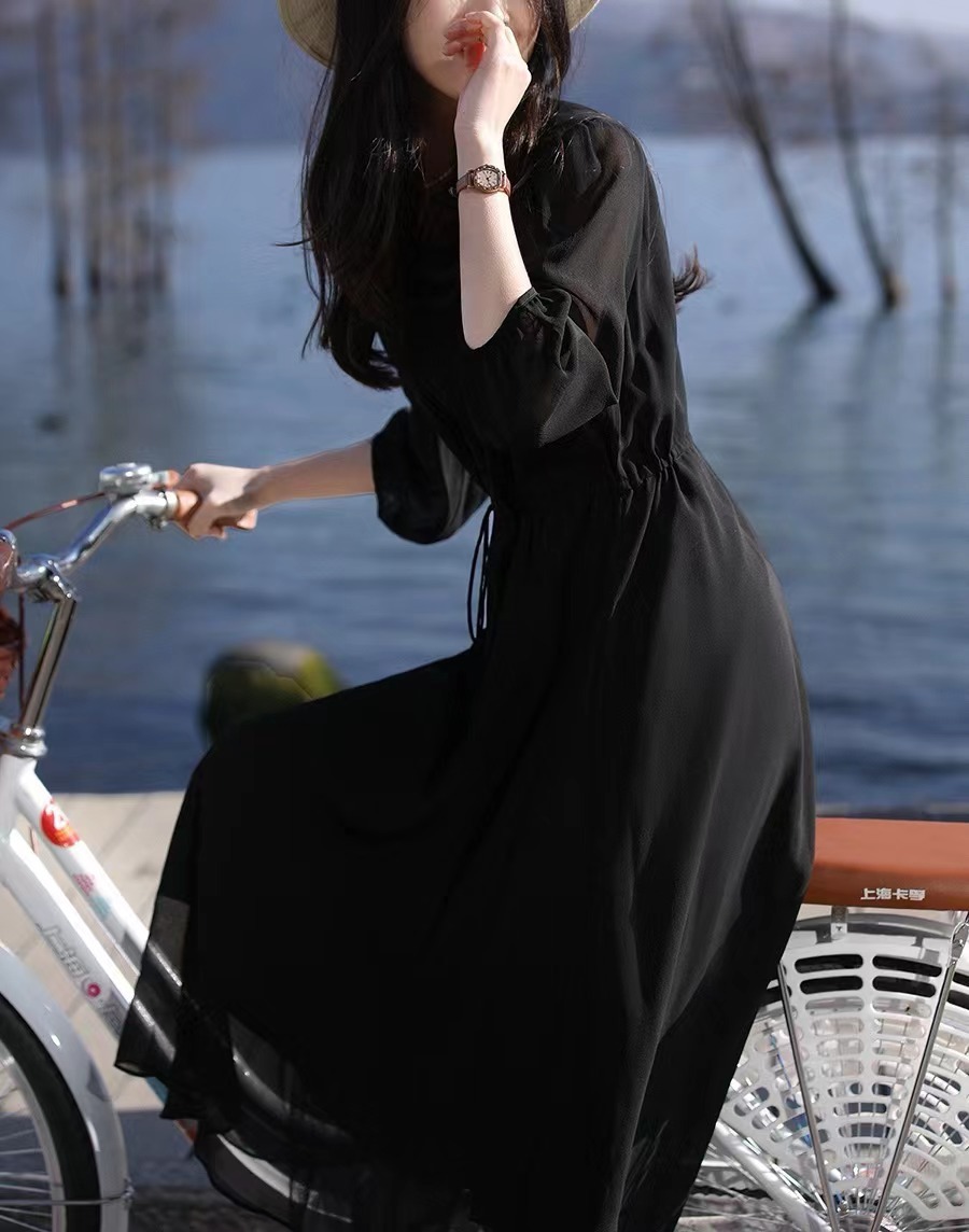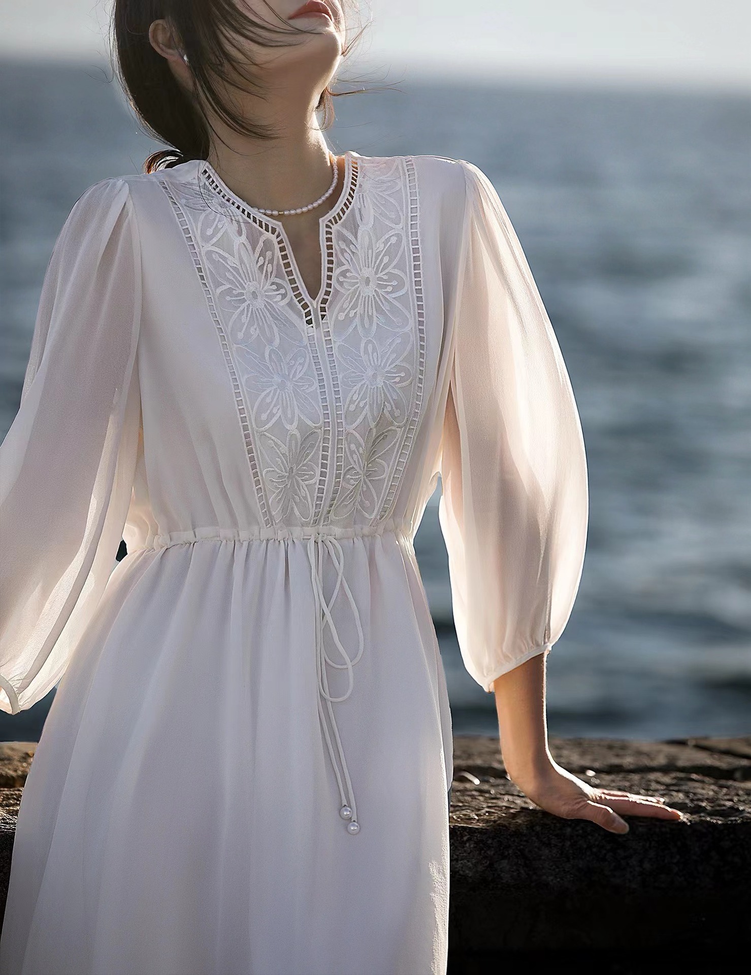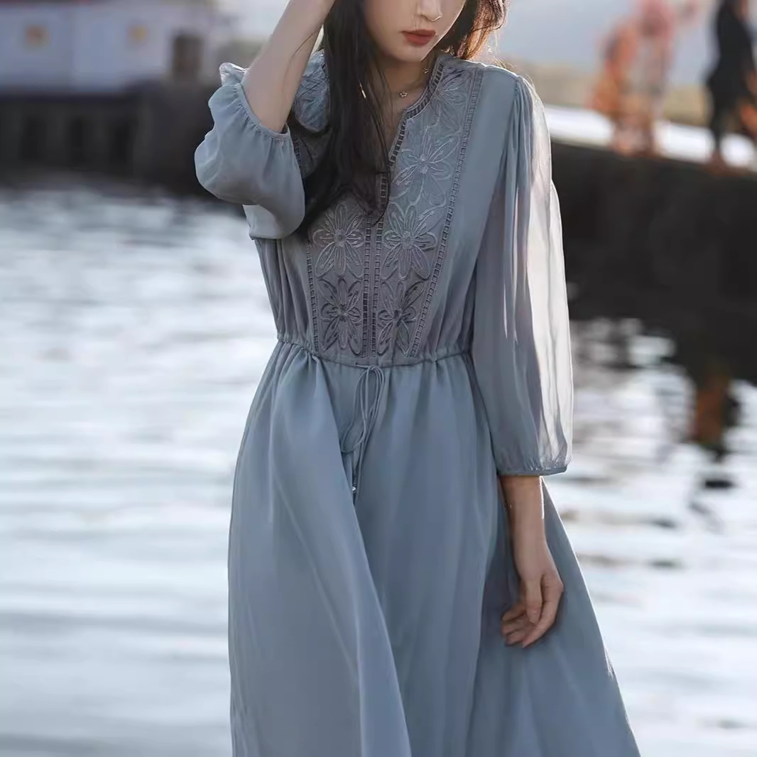 法式维多利亚仙女裙高级感重工定位刺绣轻薄飘逸乔其桑蚕丝连衣裙