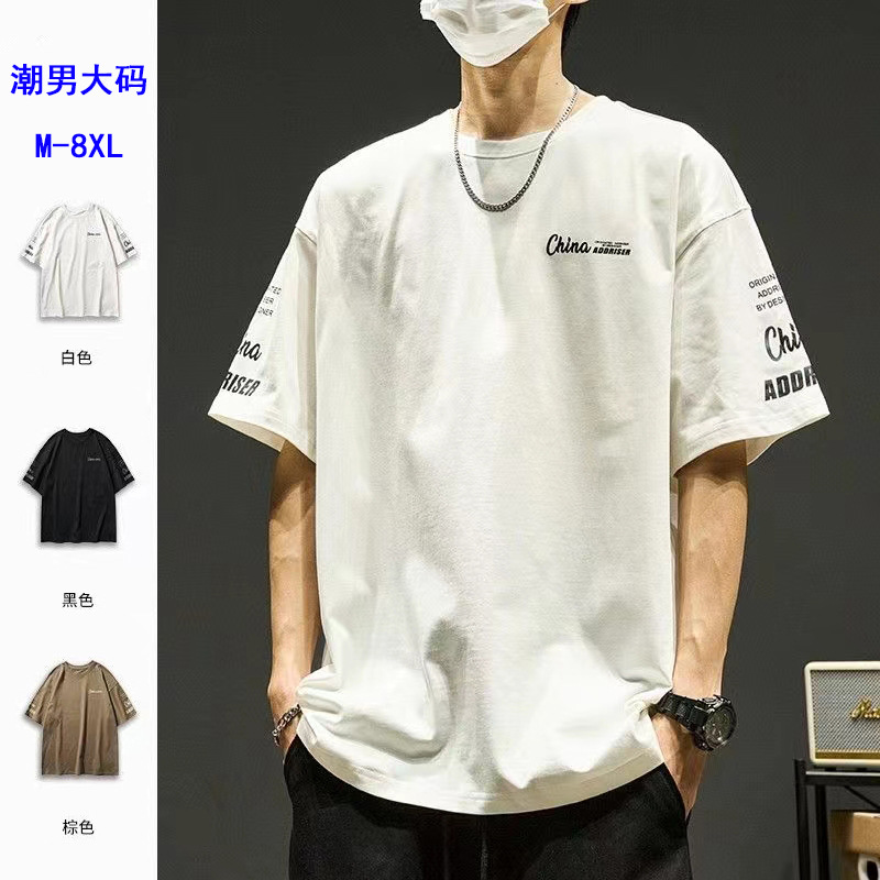 潮牌短袖t恤男夏季潮流休闲宽松青少年加肥加大码五分半袖体恤衫