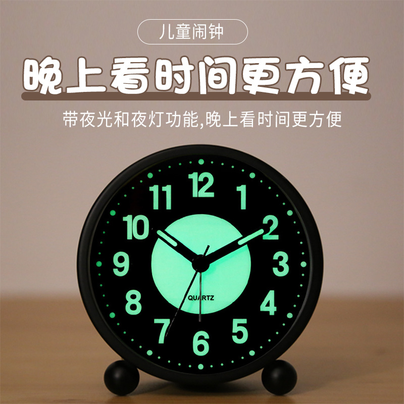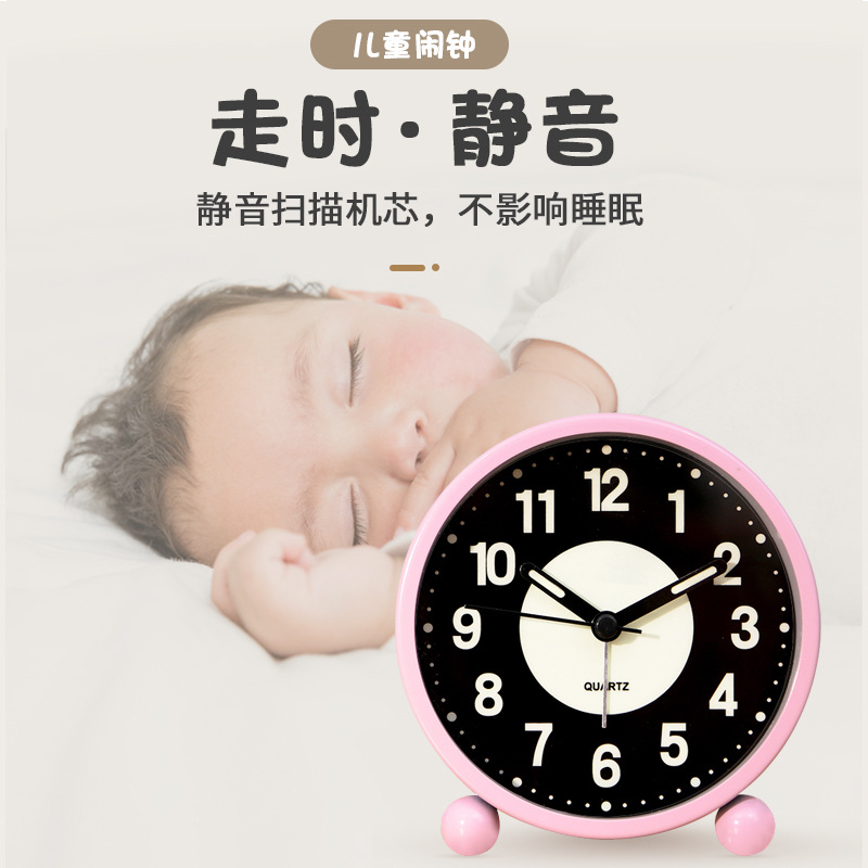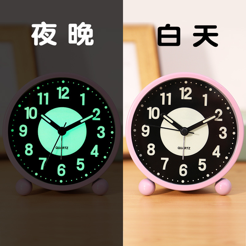 夜光小闹钟学生用卡通儿童静音卧室床头闹钟可爱超大闹铃创意时钟
