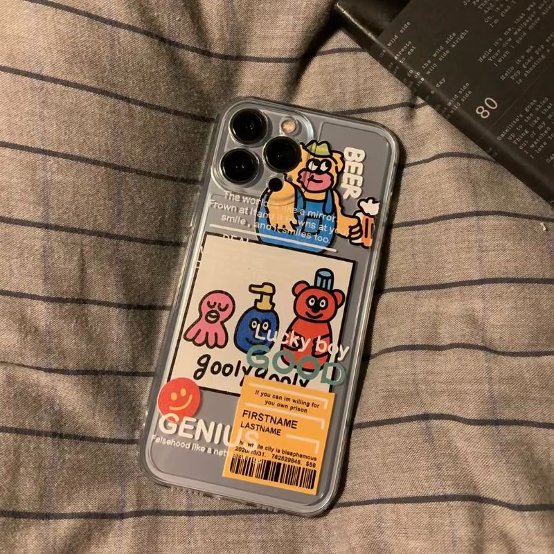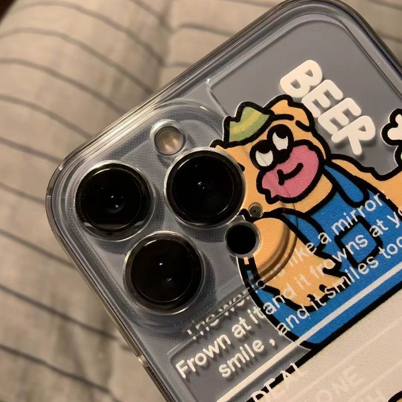 ins啤酒熊适用苹果14promax手机壳个性iPhone15Pro潮牌13透明软壳
