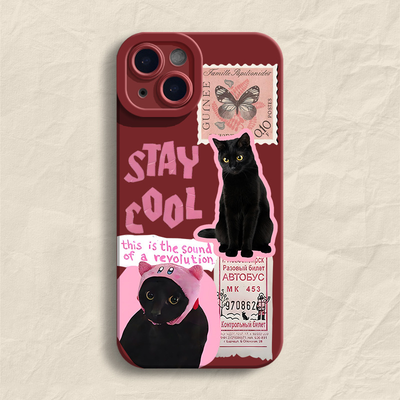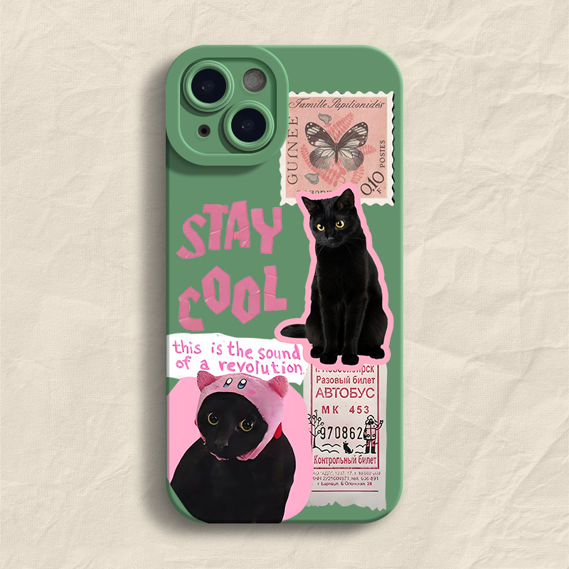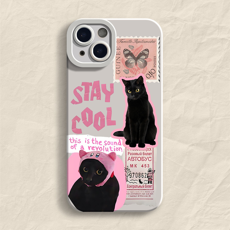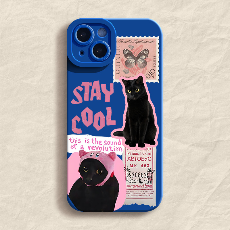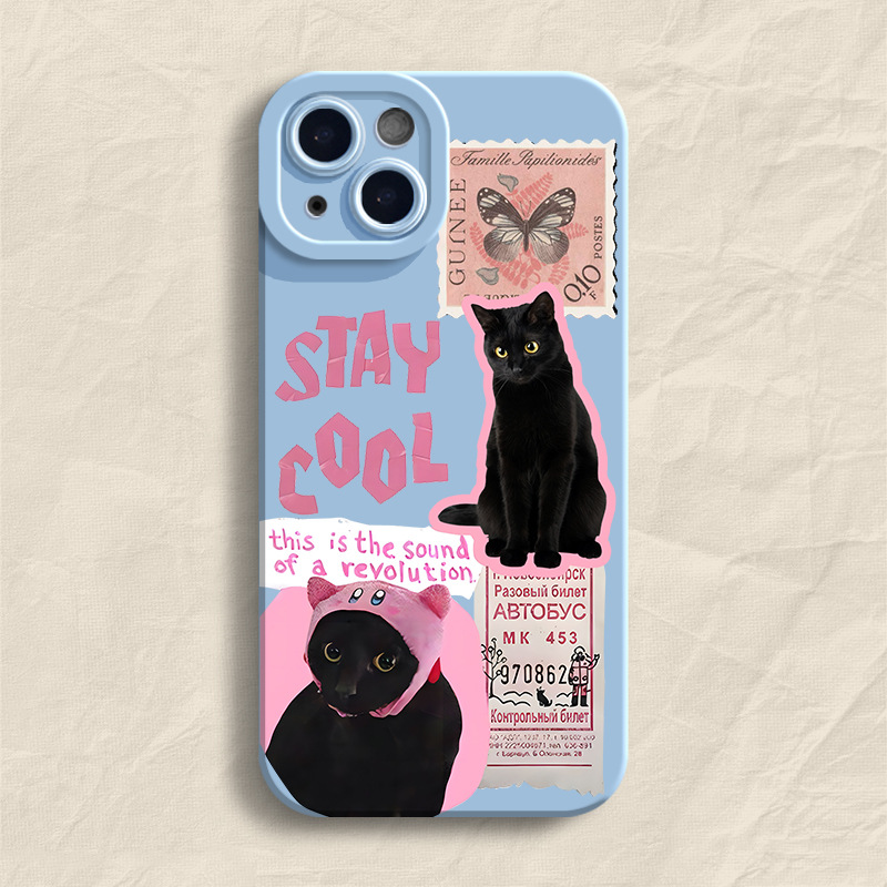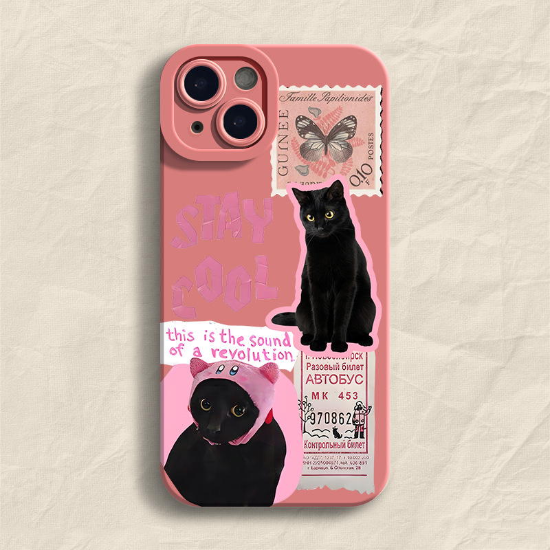 高级感邮票黑猫适用苹果14Pro手机壳iPhone13Promax卡通12创意11
