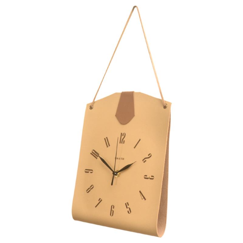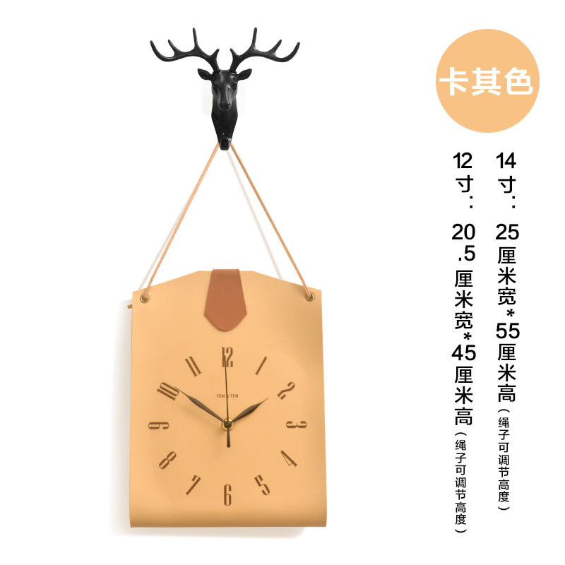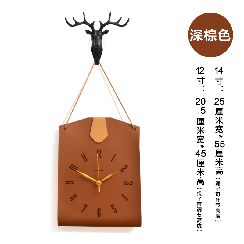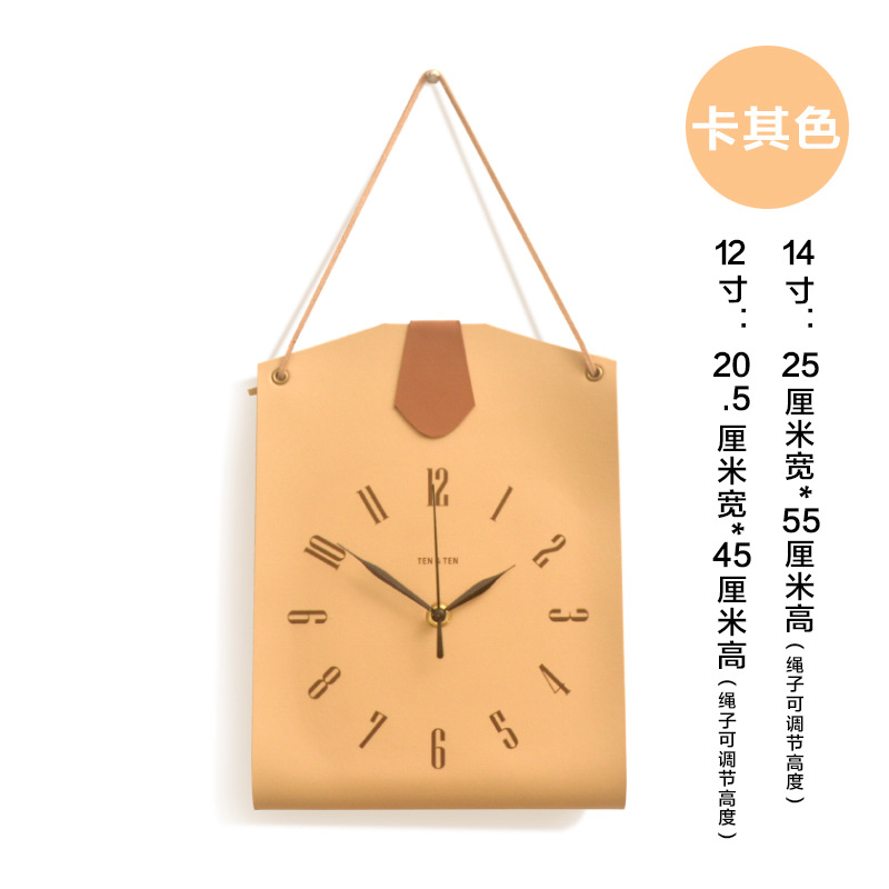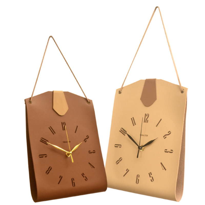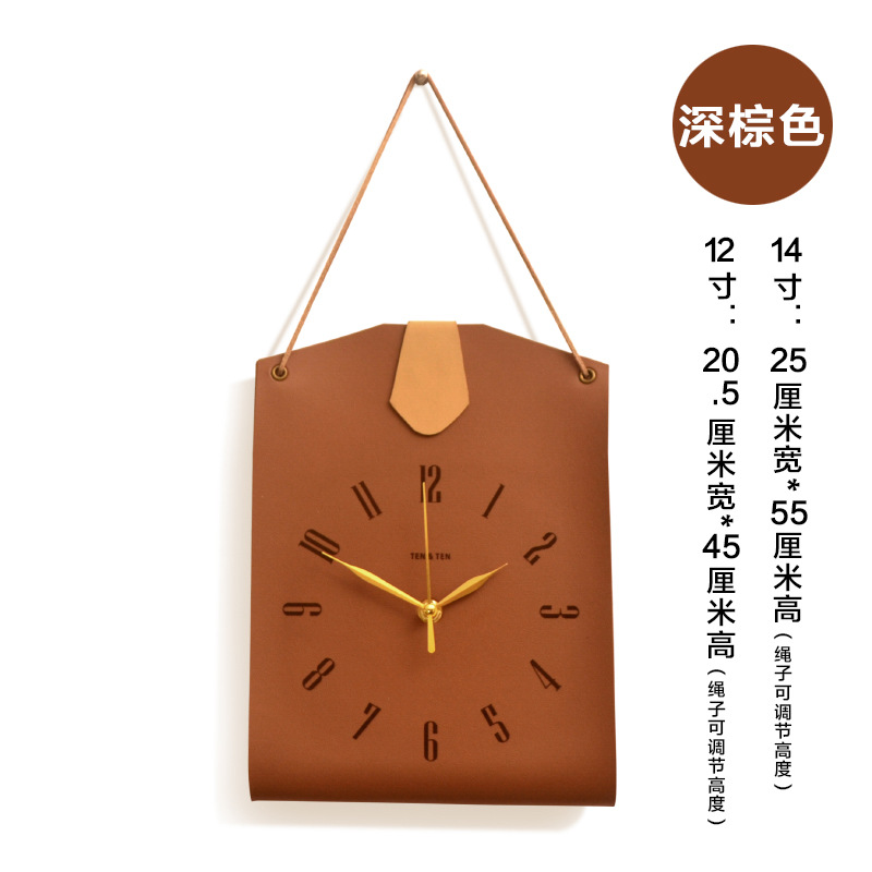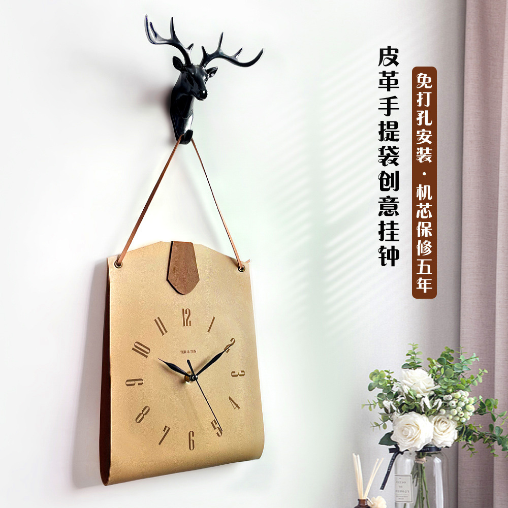 袋形创意 挂钟现代艺术时钟表挂墙复古皮革 个性客厅卧室静音跨进