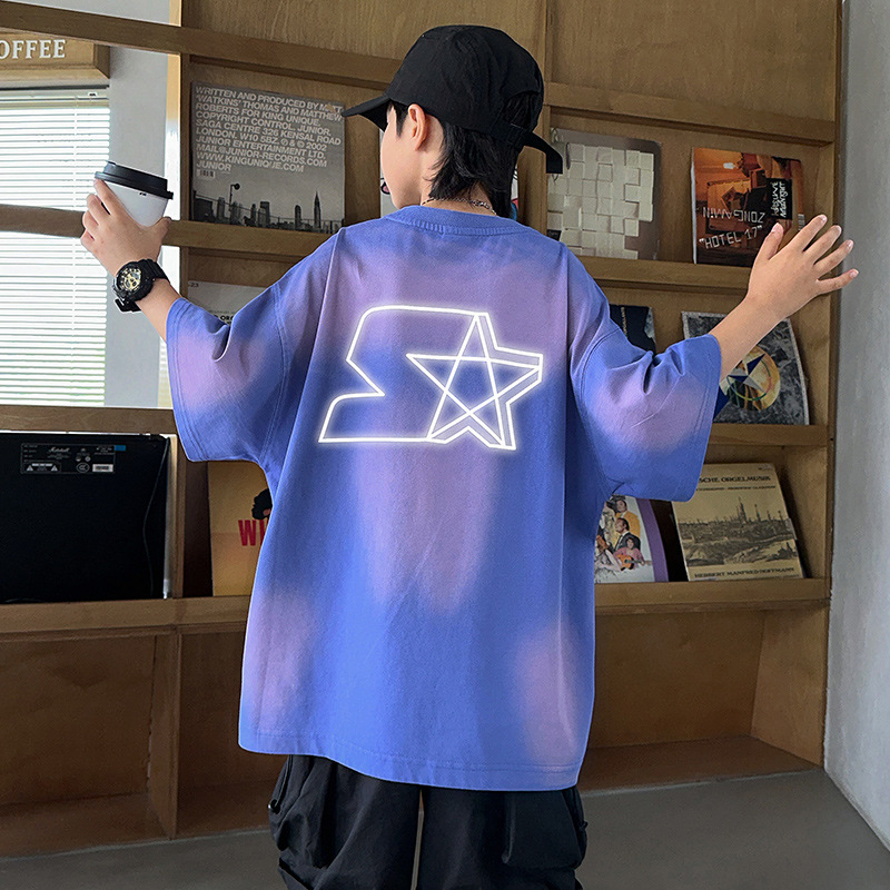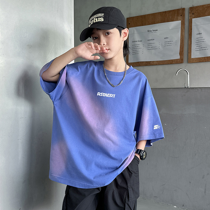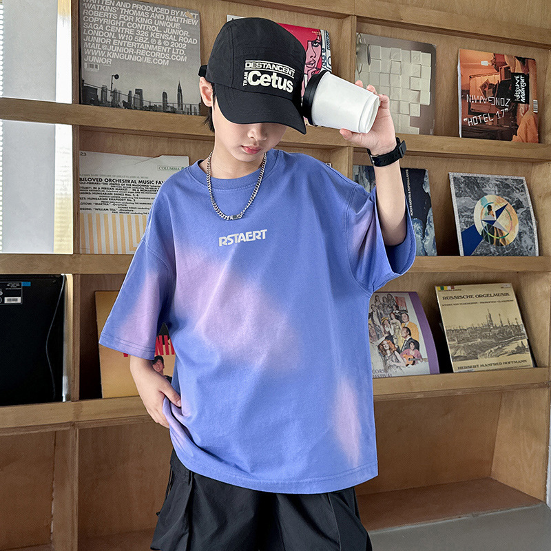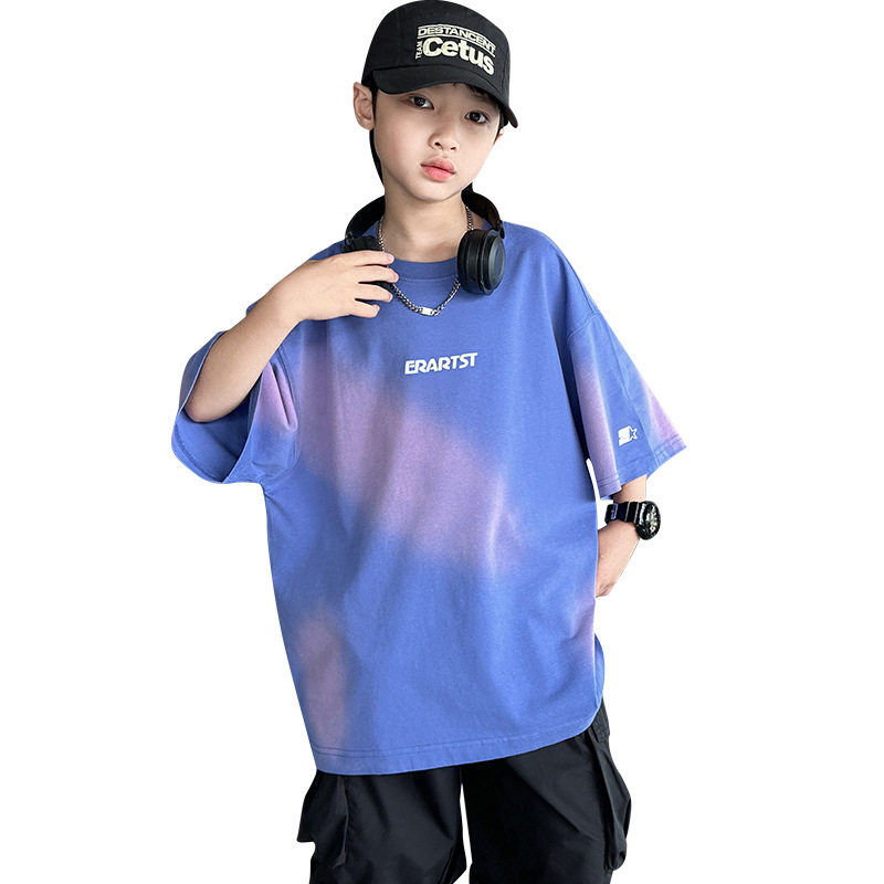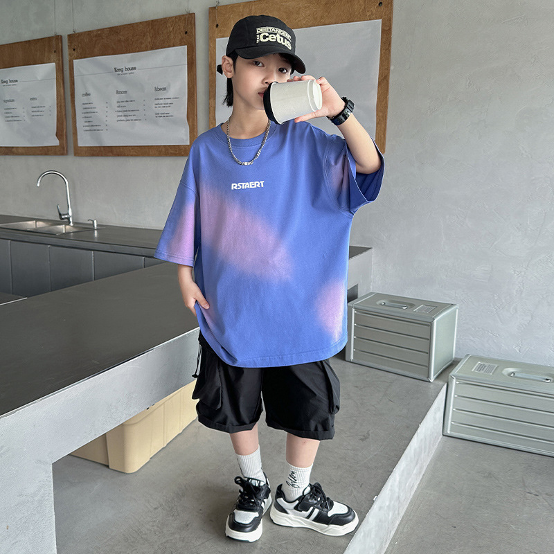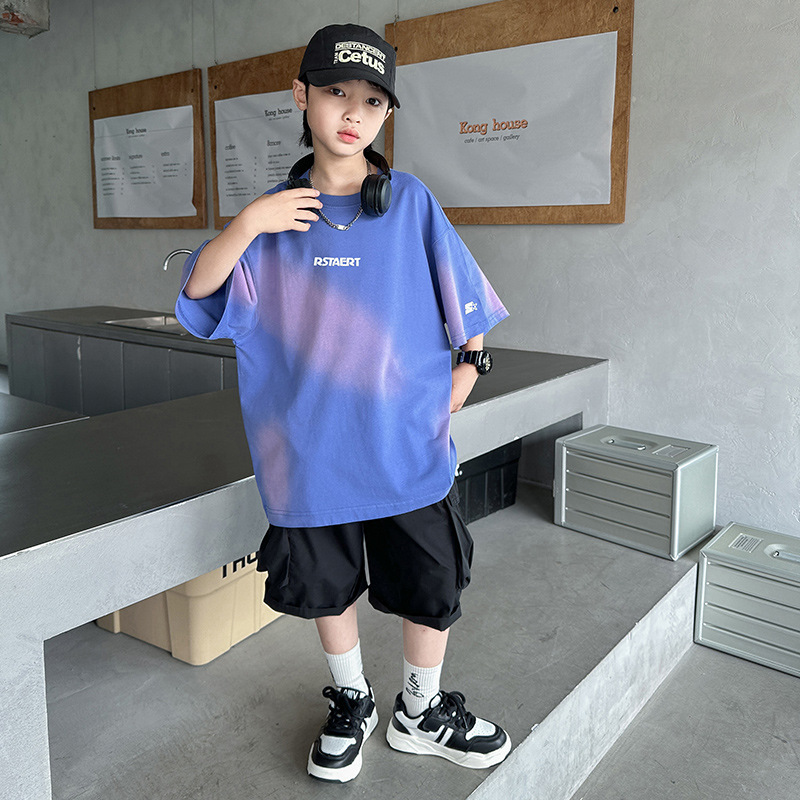 男童套装夏季新款儿童夏装扎染短袖衣服潮中大童男孩夏款童装