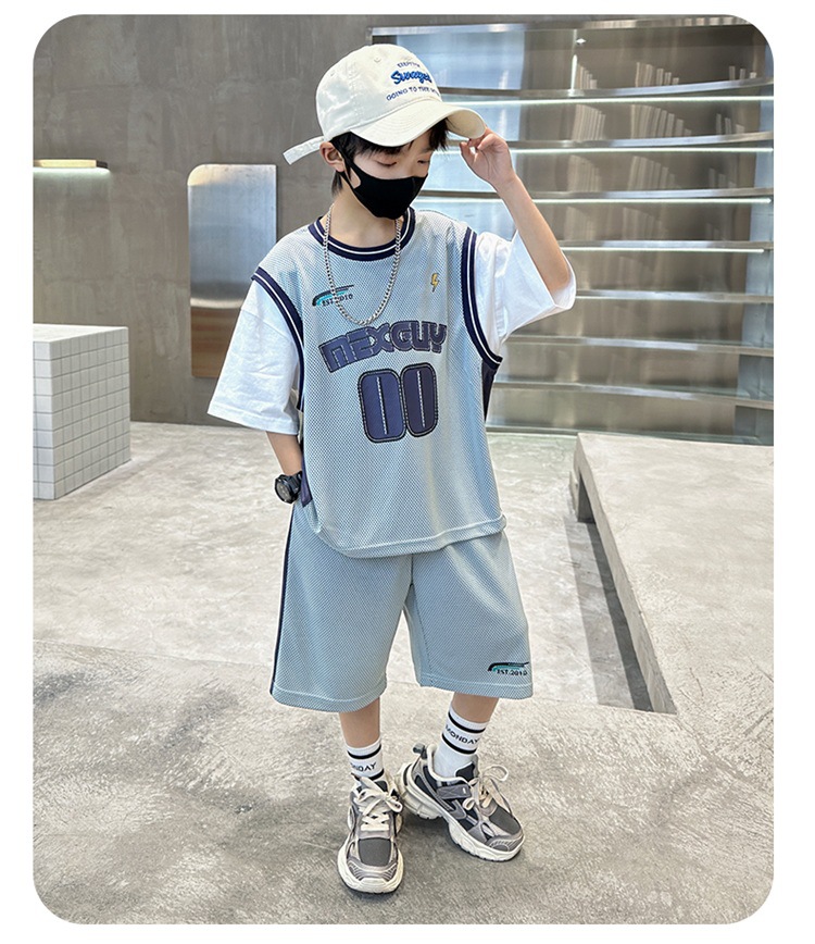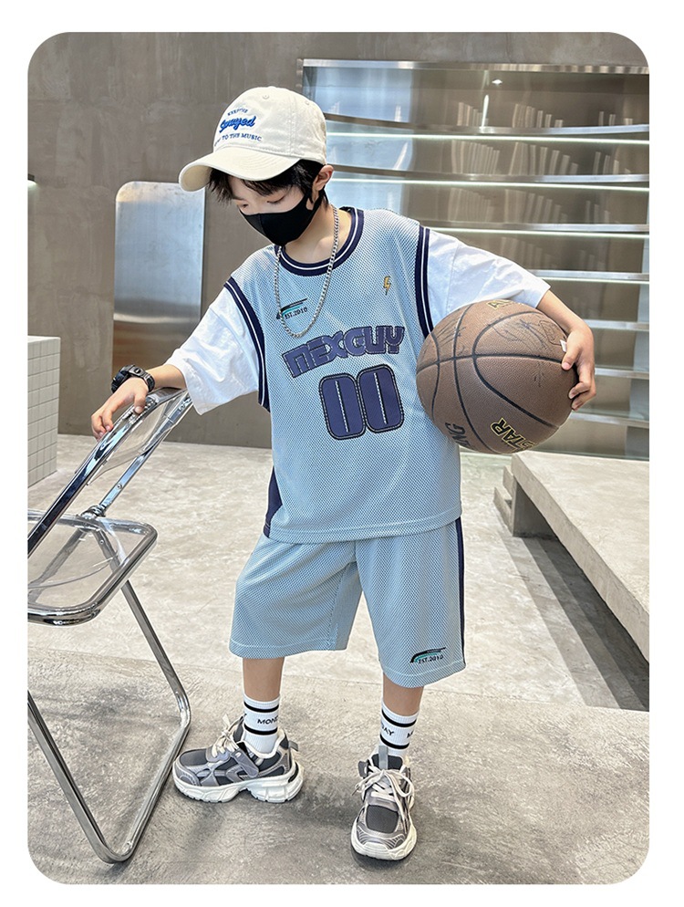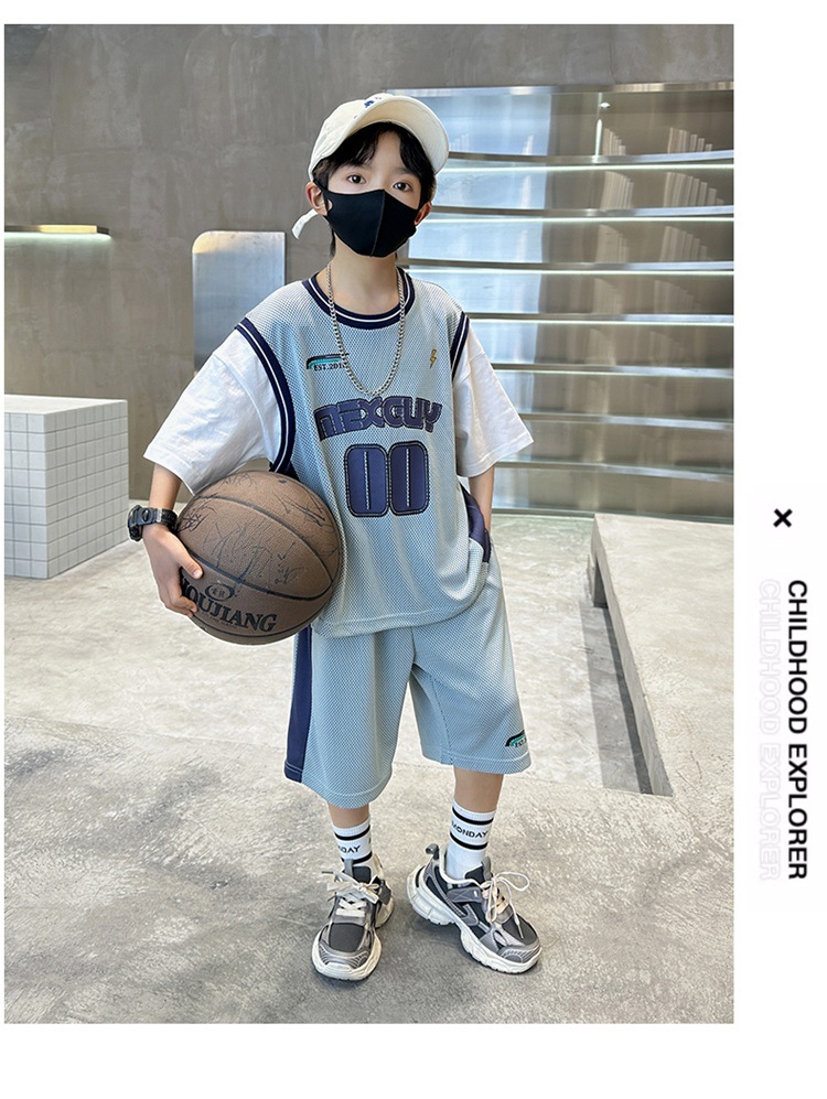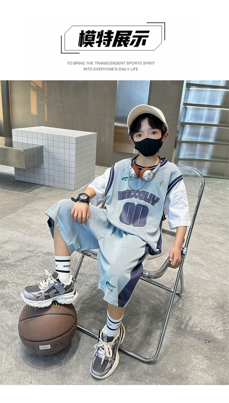 儿童装中大男童夏装速干套装新款酷帅男孩夏季篮球服运动夏款