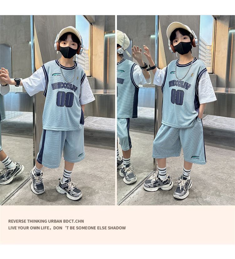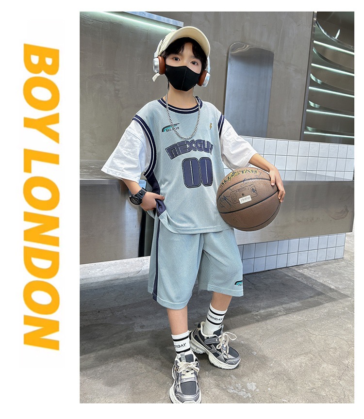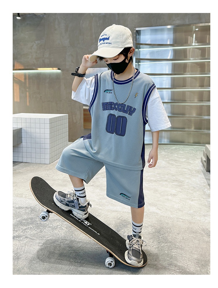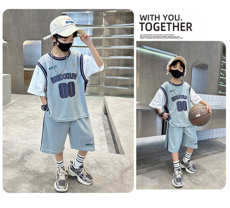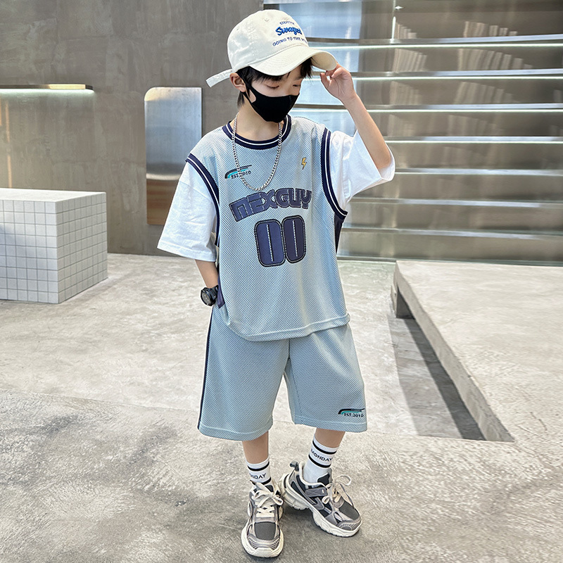 儿童装中大男童夏装速干套装新款酷帅男孩夏季篮球服运动夏款