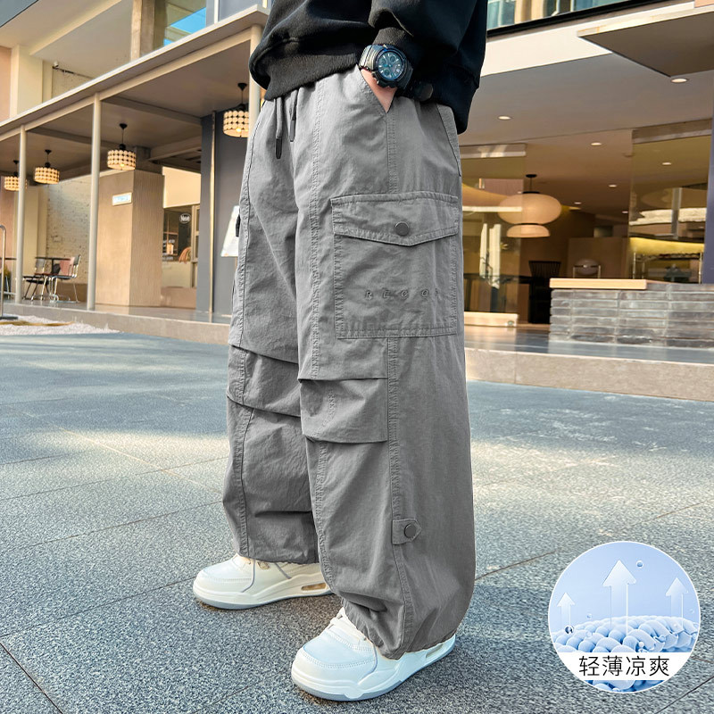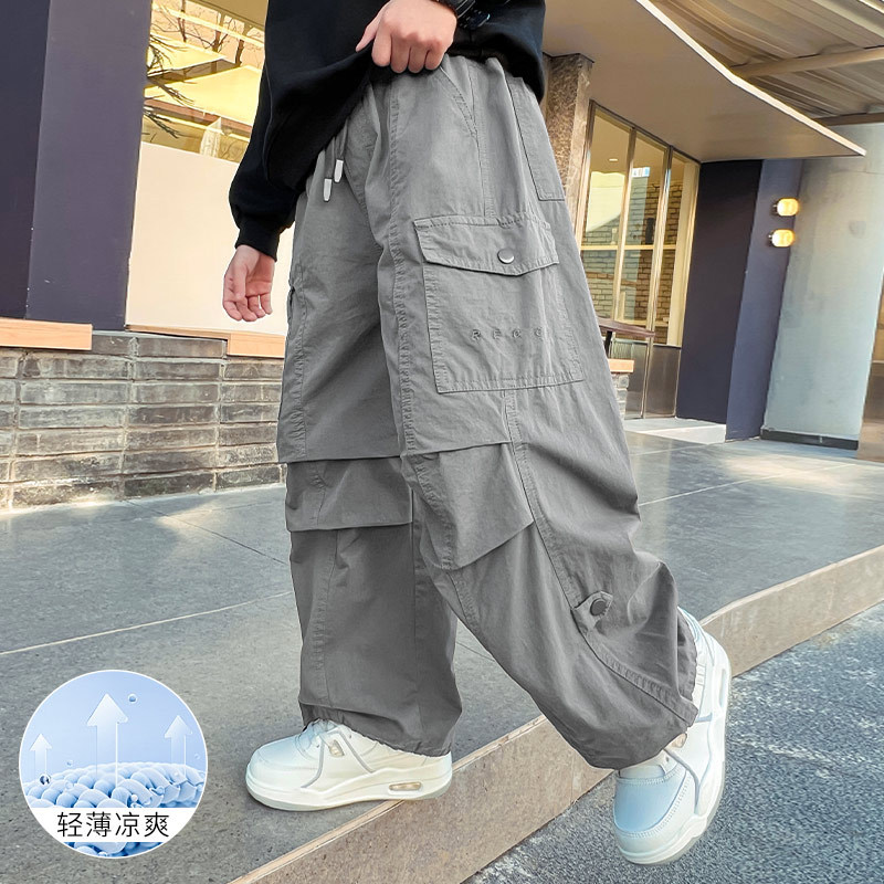 男大童夏季韩范速干直筒工装裤新款儿童薄款长裤男孩宽松裤子