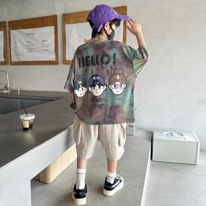 夏季短袖T恤儿童时尚潮流印花体恤衫童装百搭打底衫上衣半袖