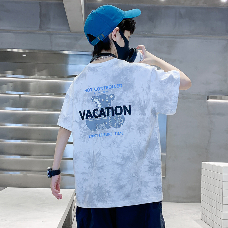 泰如夏季新款韩版男童百搭字母美式套头设计感T恤儿童短袖潮