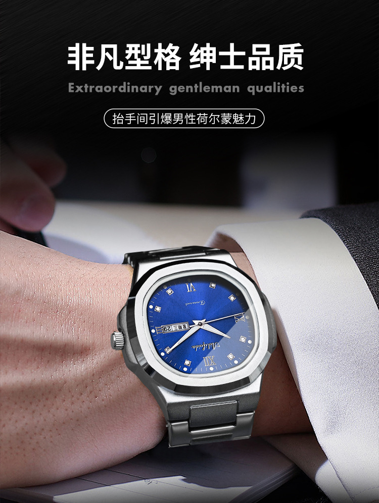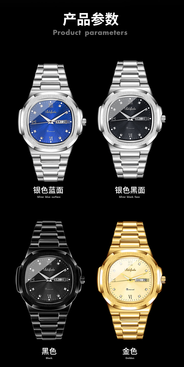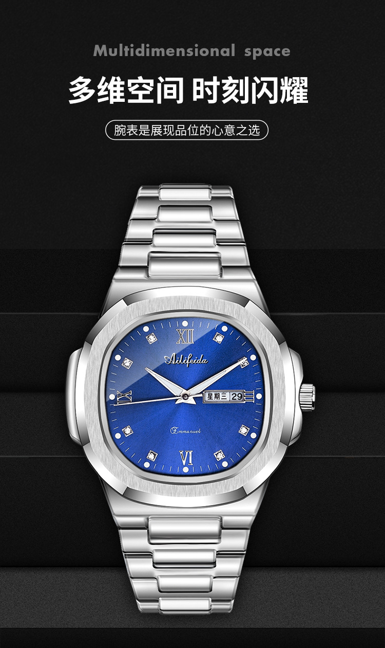 艾利翡达镂空鹦鹉螺石英手表男士一件代发抖音直播爆款批发不锈钢