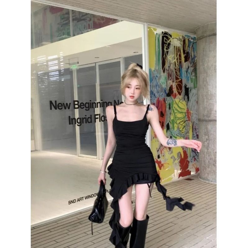 【跨境批发】潮流气质上衣女夏季气质花朵纯欲收腰荷叶边裙子