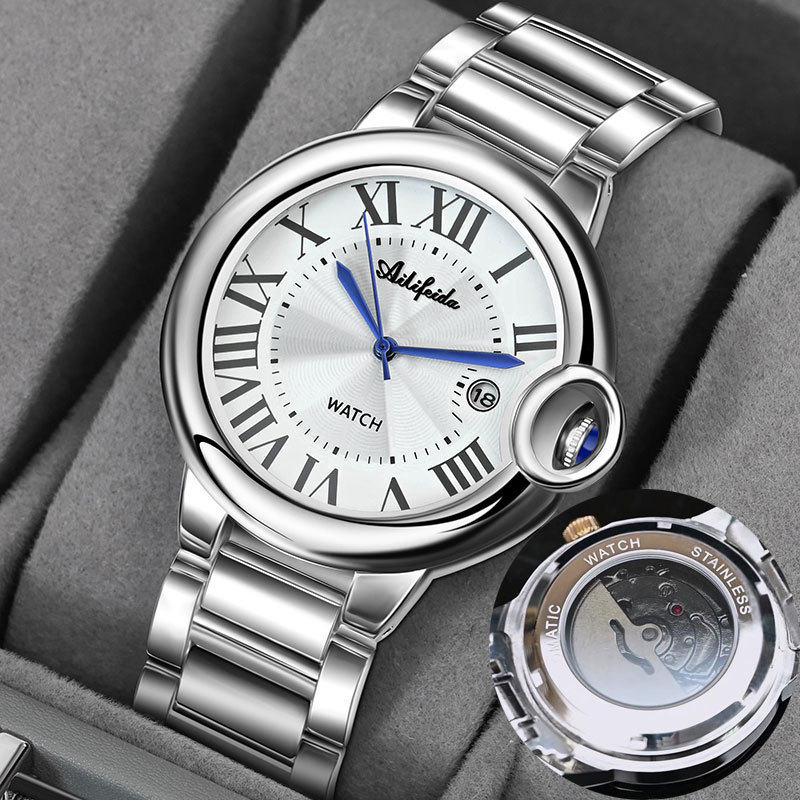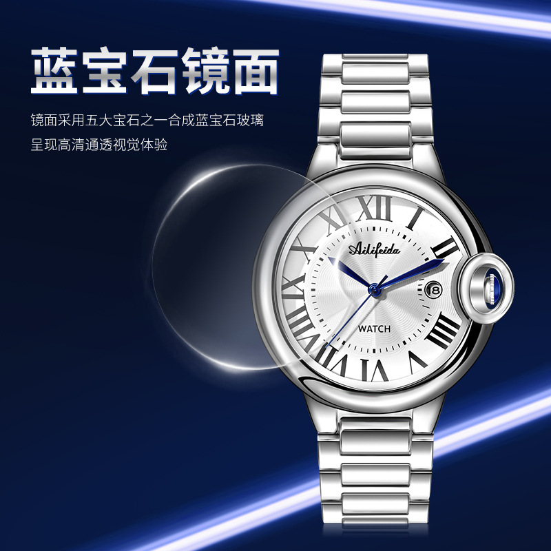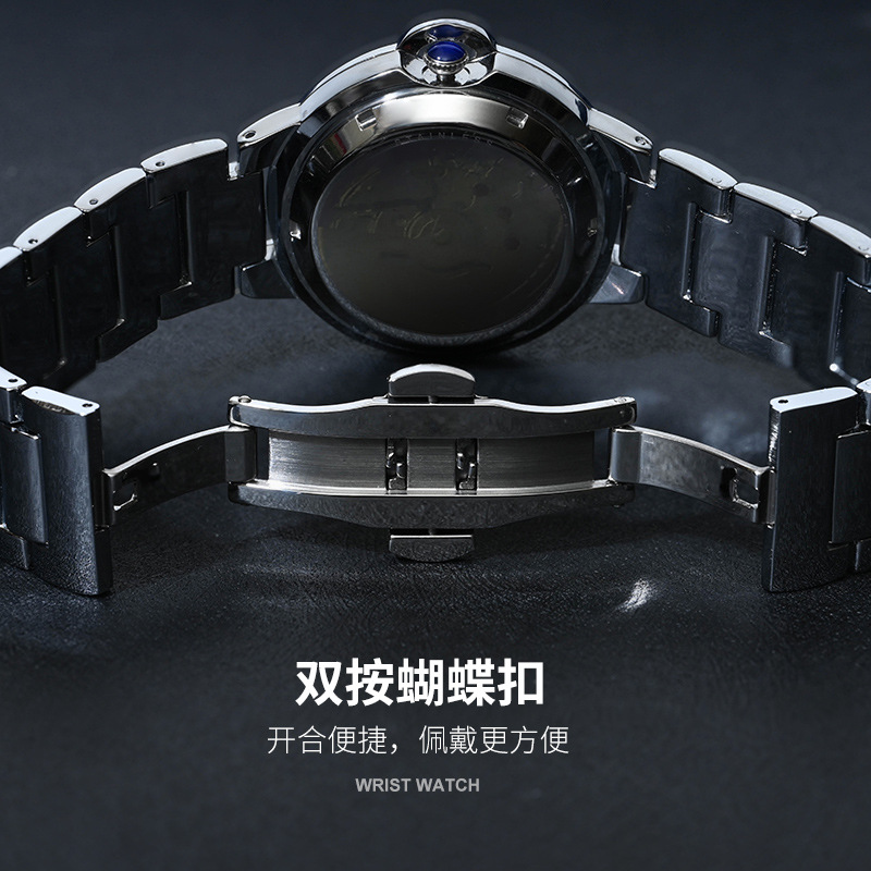 商务金气球石英手表男士后盖镂空防水日历表抖音直播爆款
