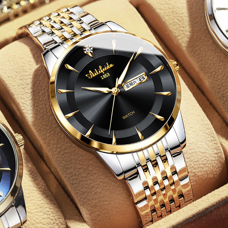 新款钢带手表男士石英表潮流简约商务防水夜光表抖音直播爆款名表