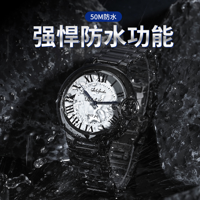 艾利翡达气球石英手表男士后盖镂空防水日历抖音直播爆款