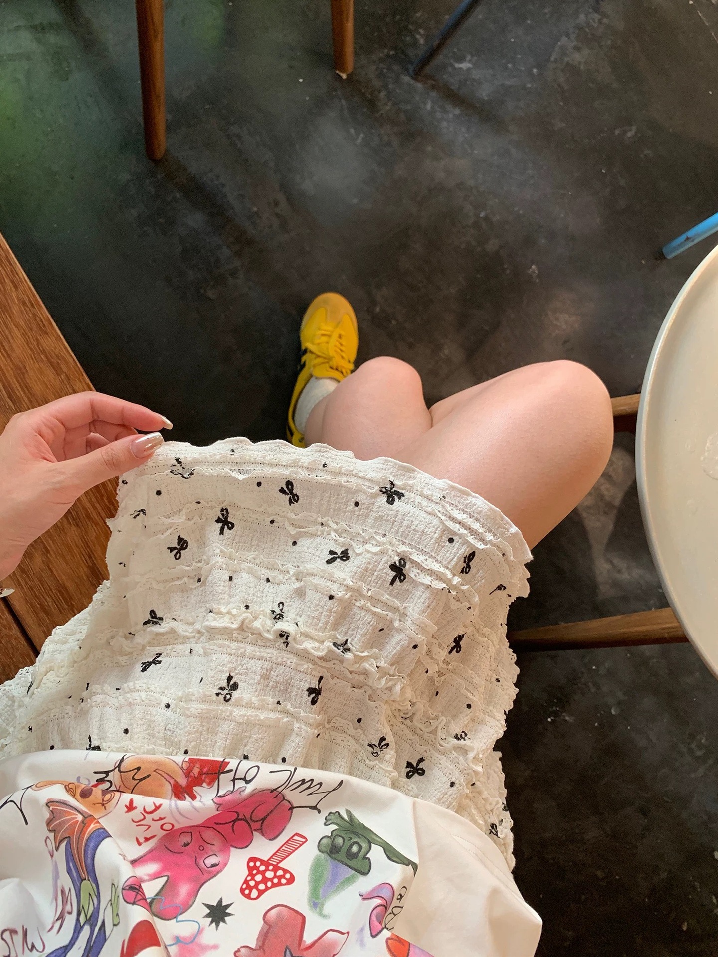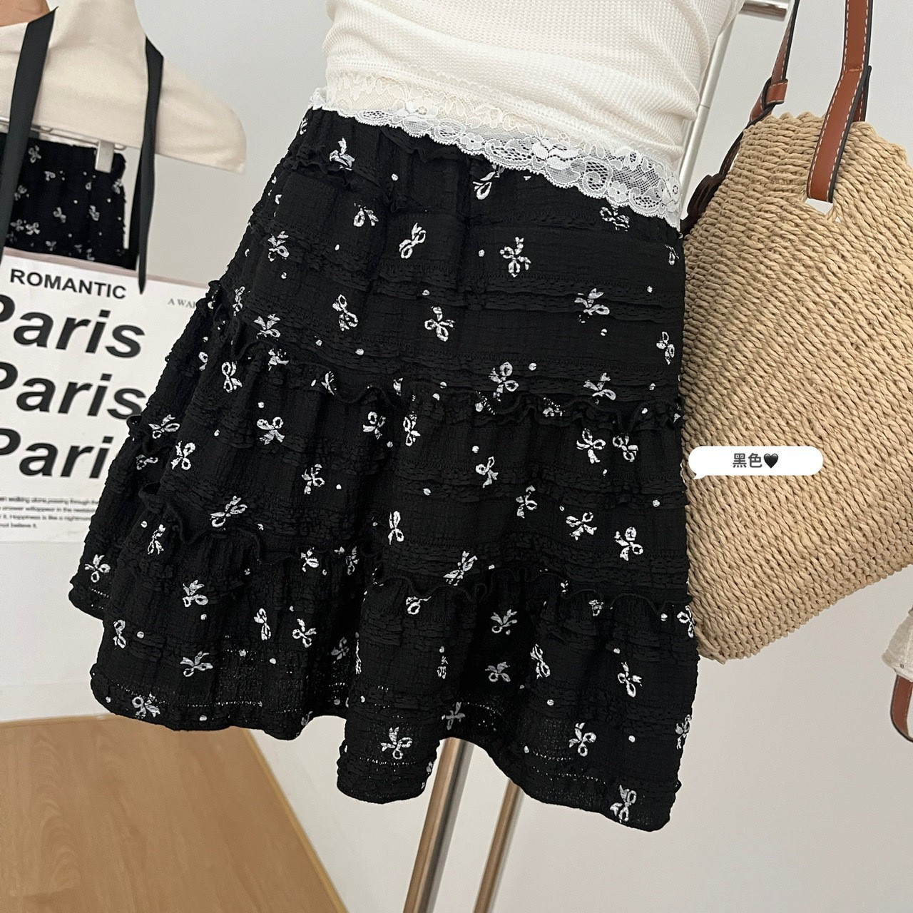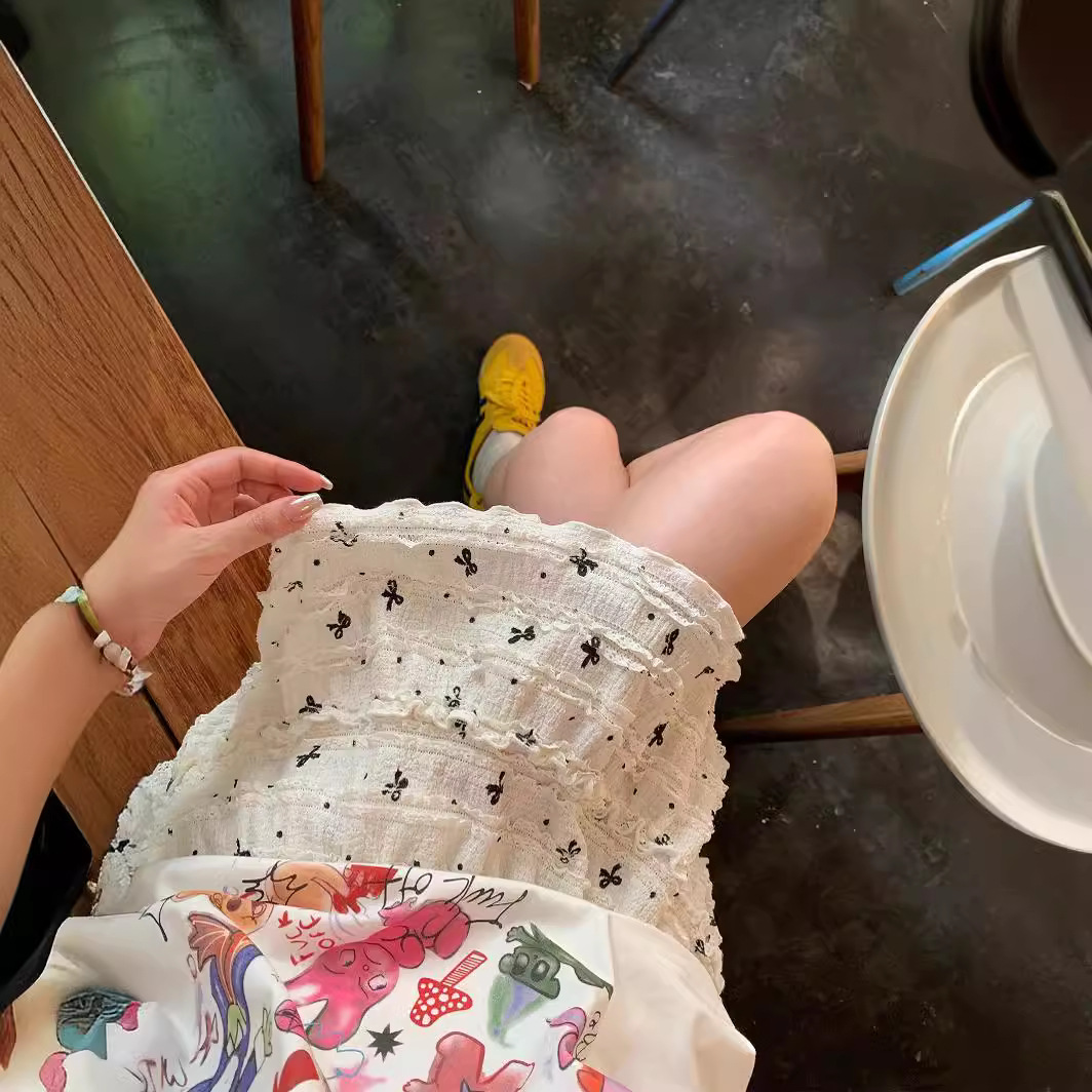 香草千层 半身裙女夏季短裙a字蕾丝蝴蝶结白色蛋糕裙