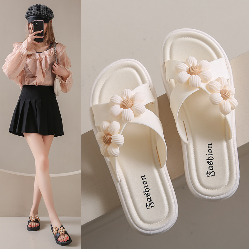 罗马花拖鞋女新款夏季百搭女士平底防滑厚底外穿学生时装沙滩凉拖