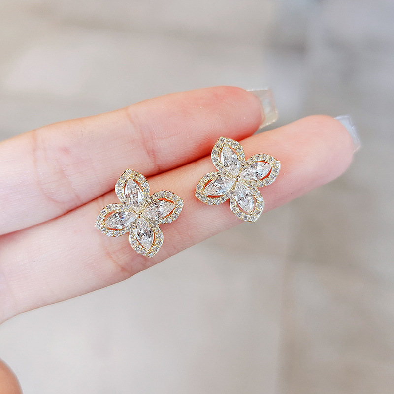 幸运四叶草耳钉女小众设计感高级S925银针耳环轻奢氧化锆耳饰