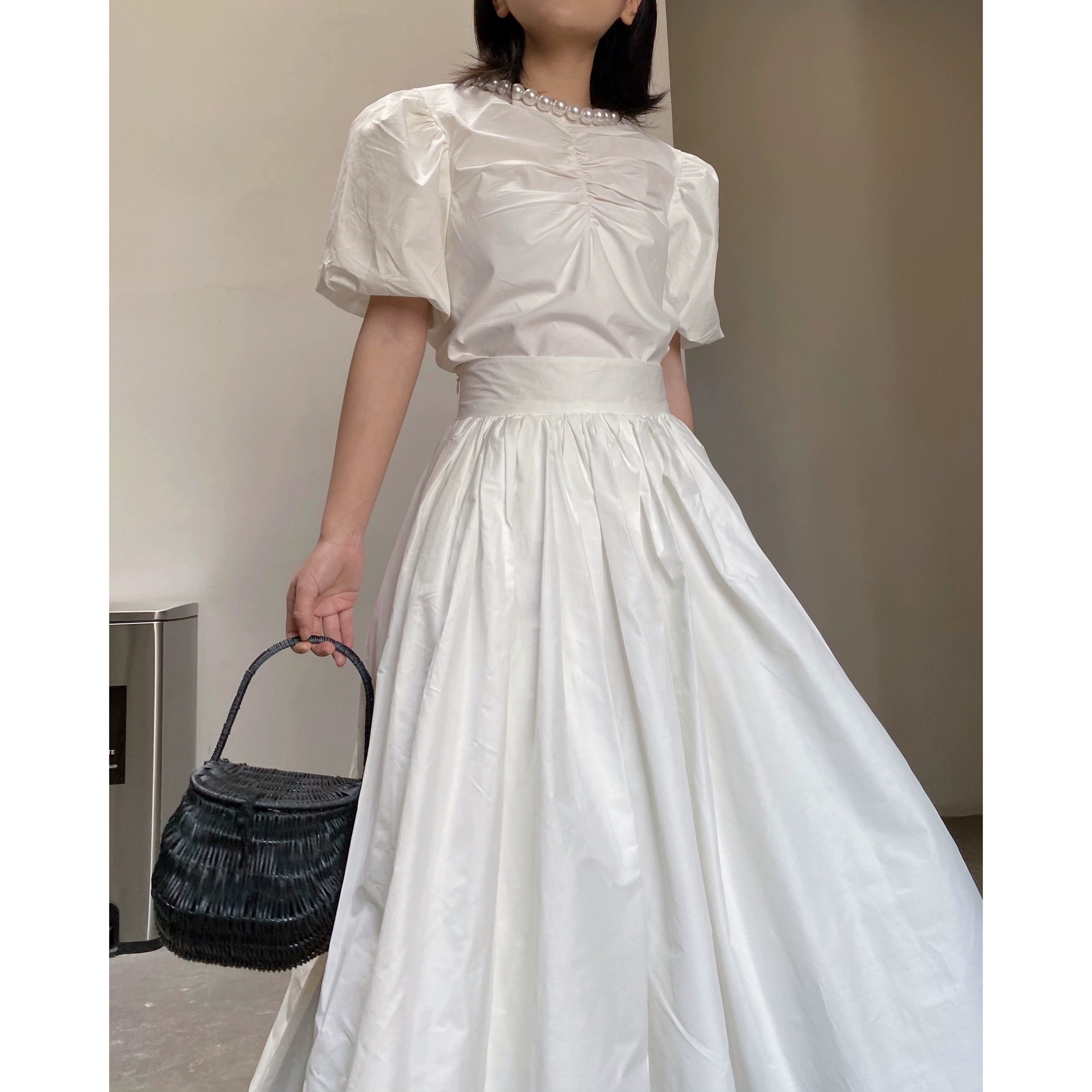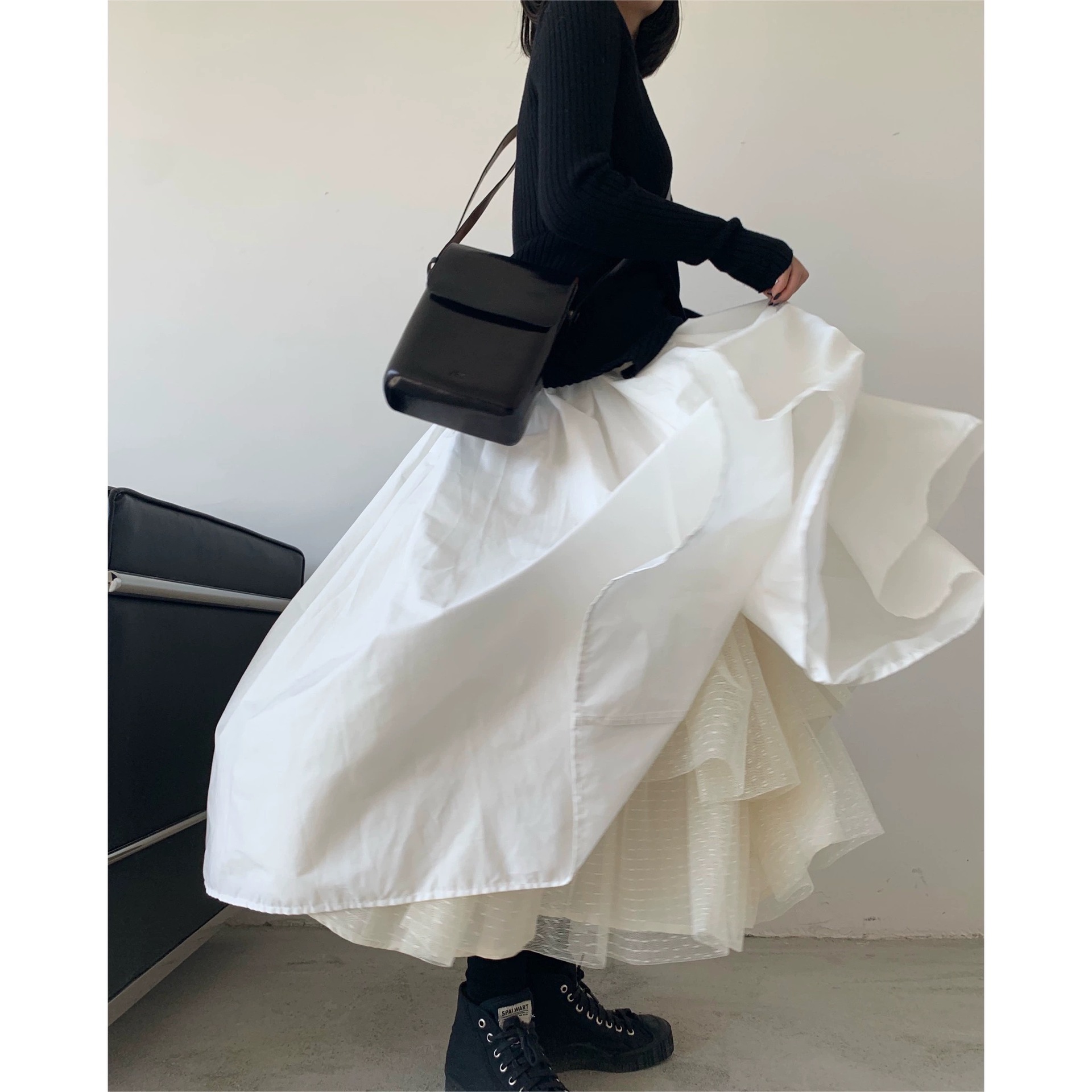 内里拼纱重工蓬蓬白裙 超A白色半身裙