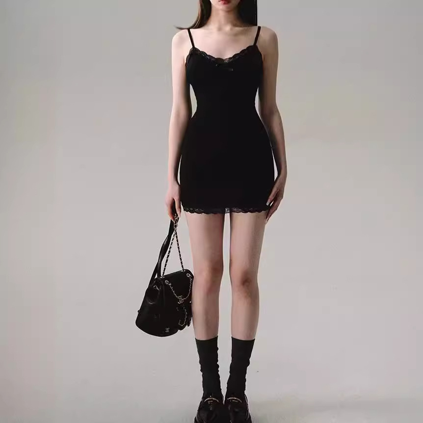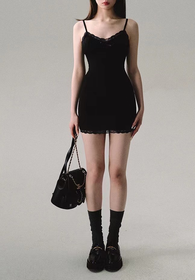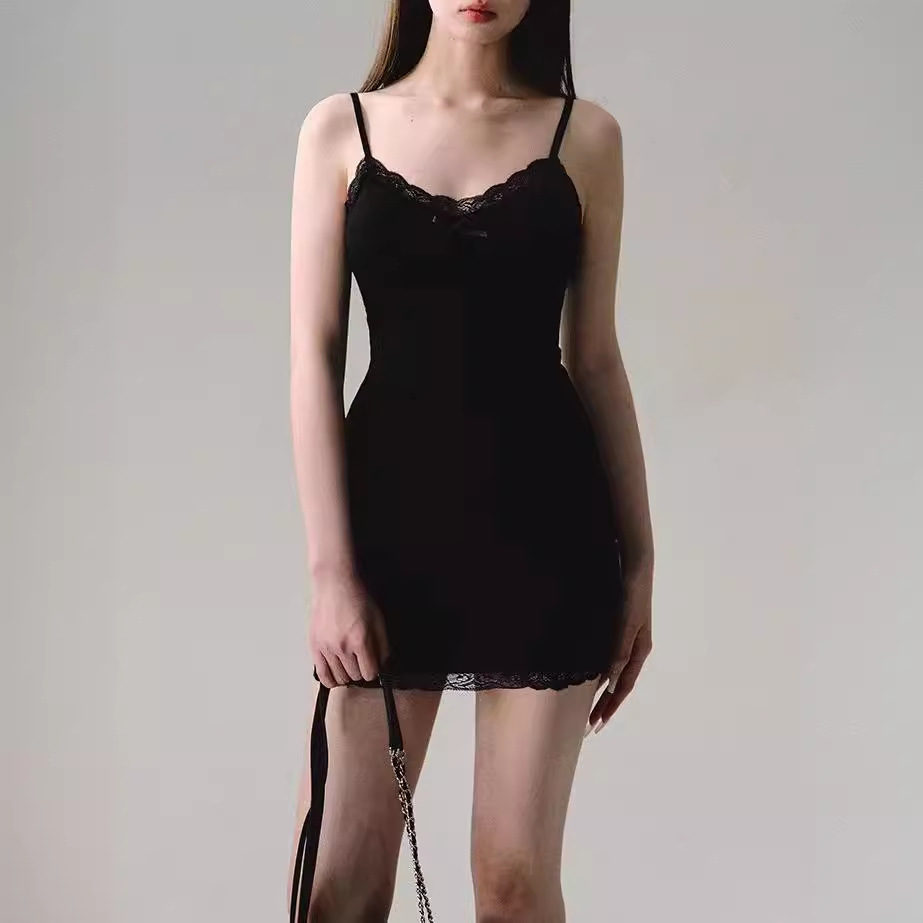 纯色蕾丝针织吊带裙女夏季简约亲肤内搭裙