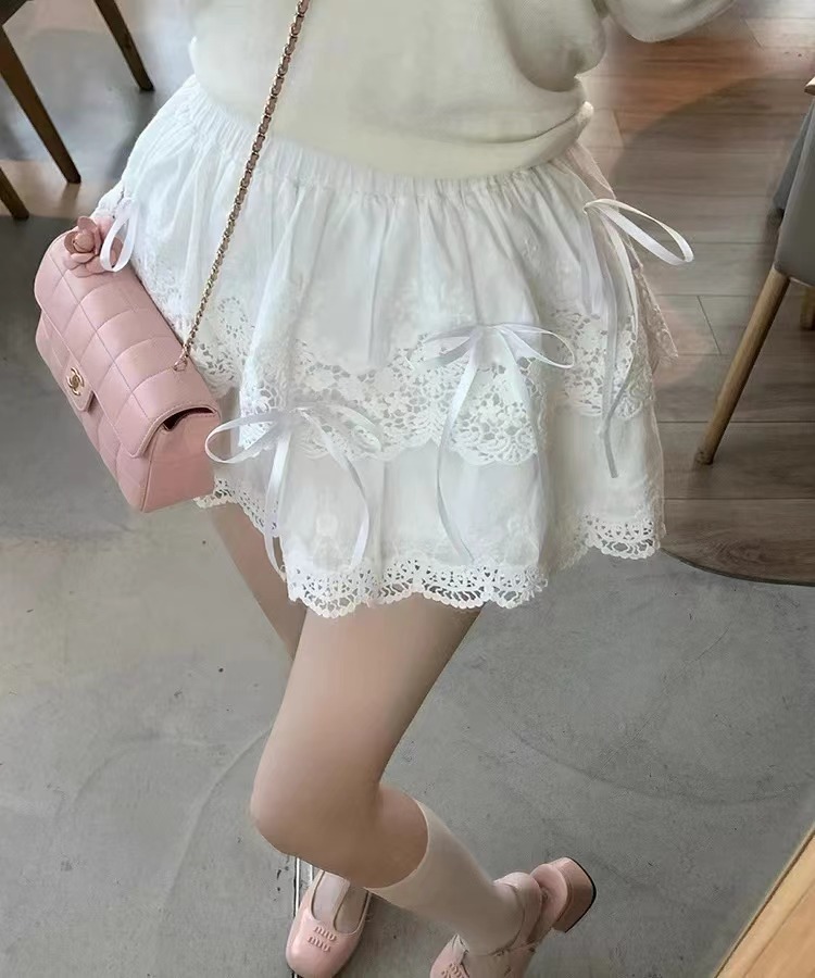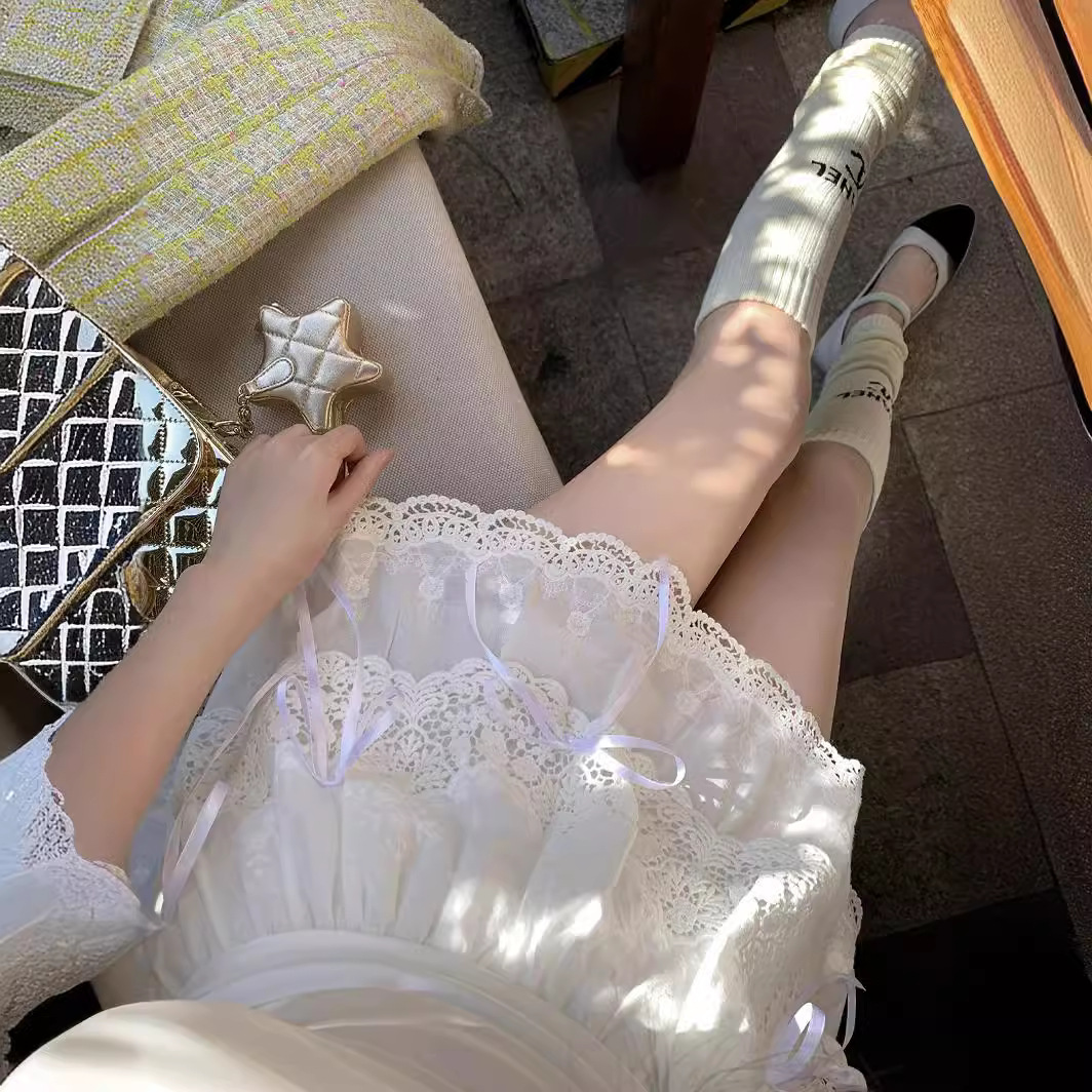 月下昙花 蕾丝蝴蝶节白色芭蕾蛋糕裙公主裙女春夏