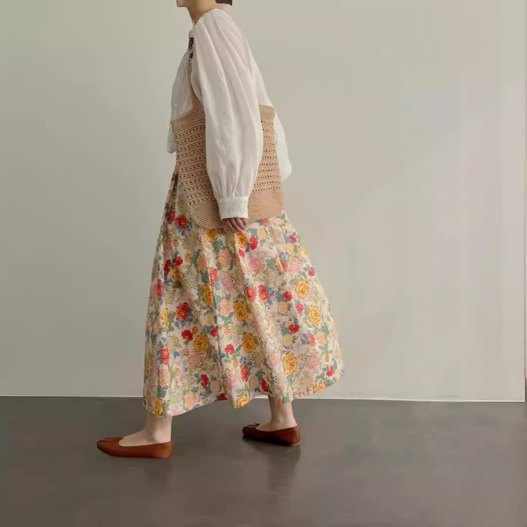 新品女童简约无袖背心裙夏季新款2025女宝宝衬衫蝴蝶结印花连衣裙