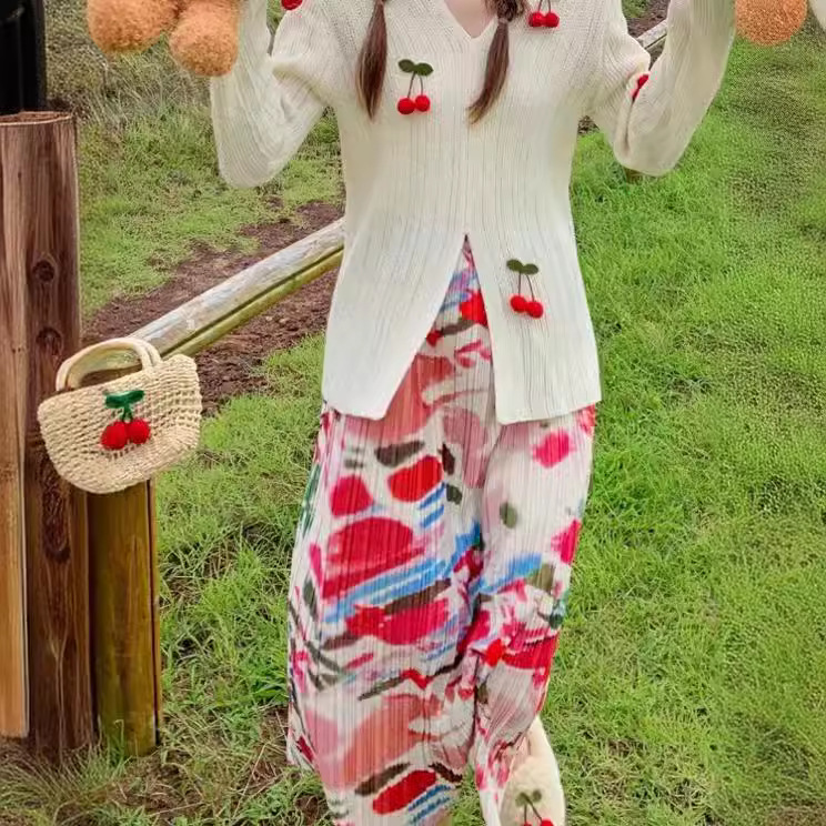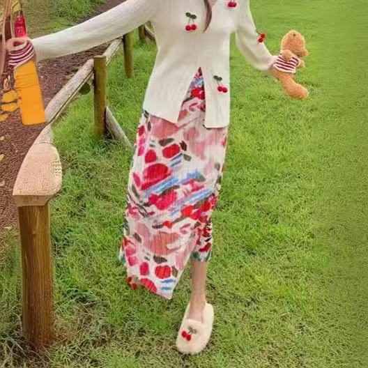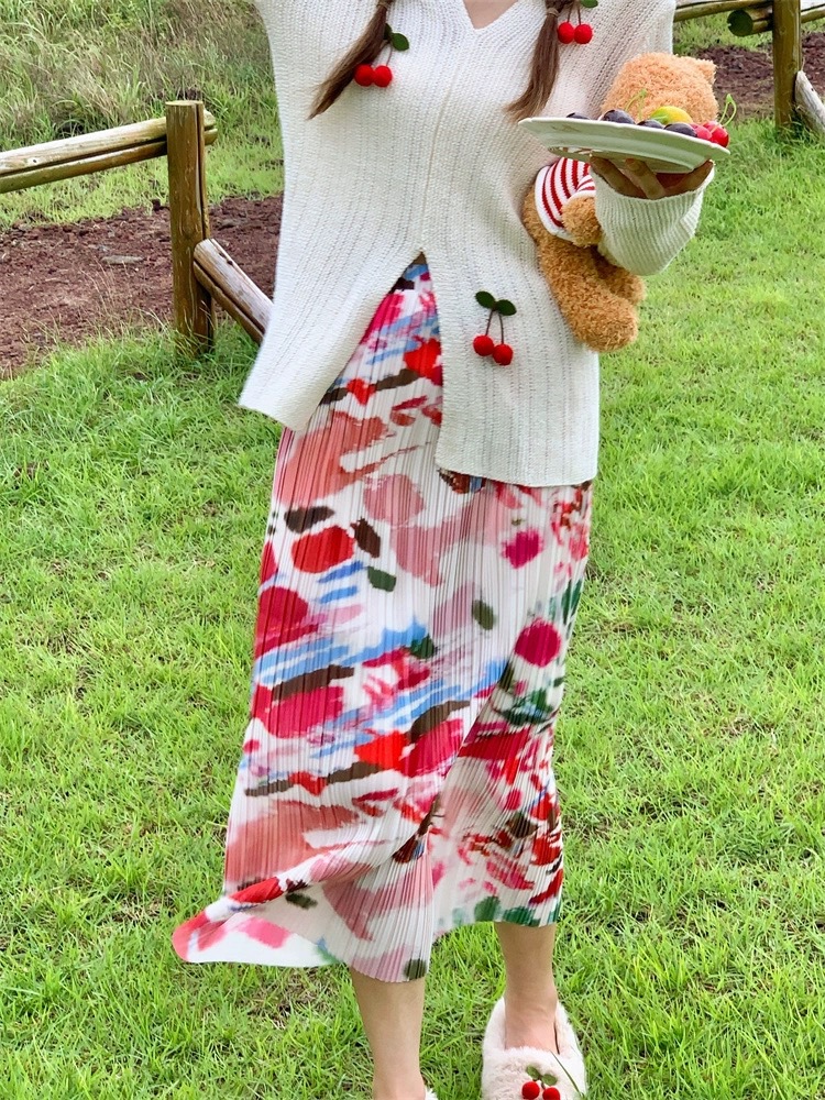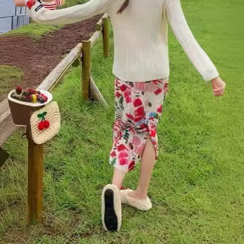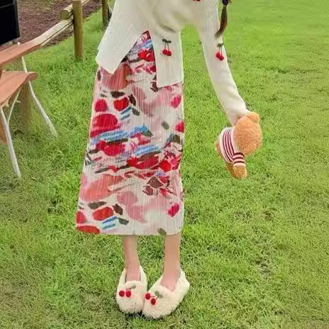 印花褶皱半身裙女春季新款垂感修身显瘦时尚气质长裙