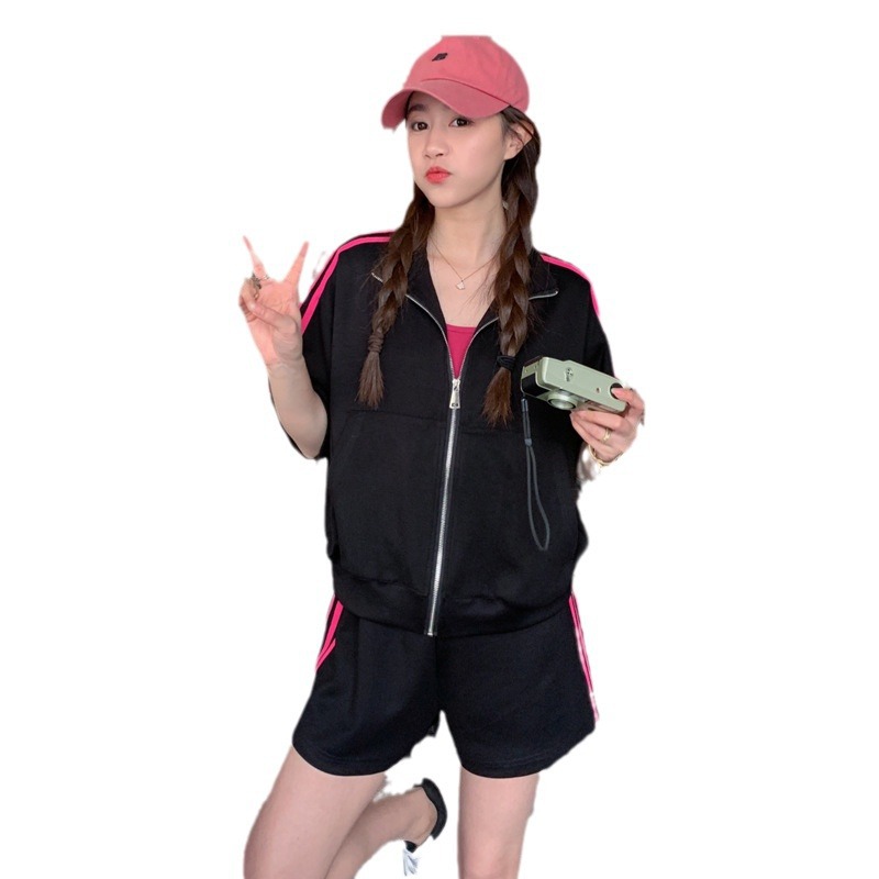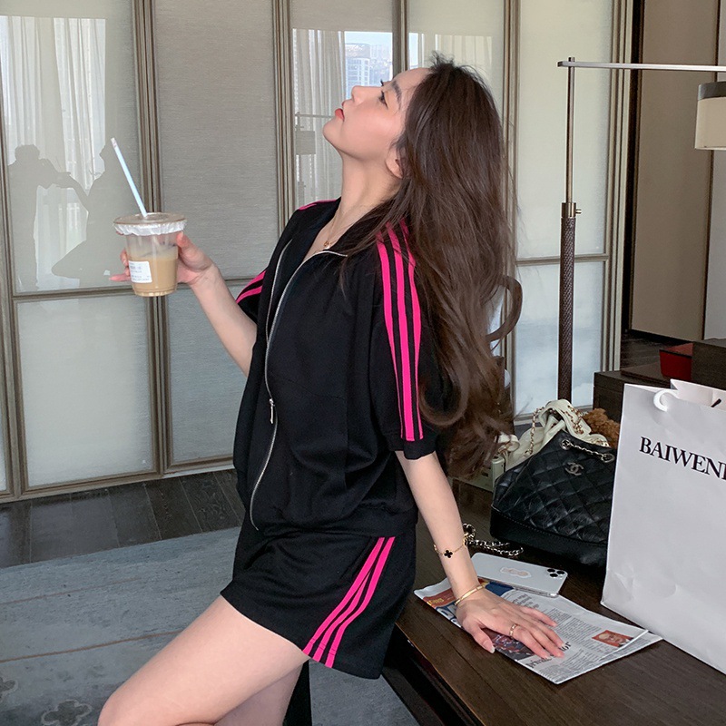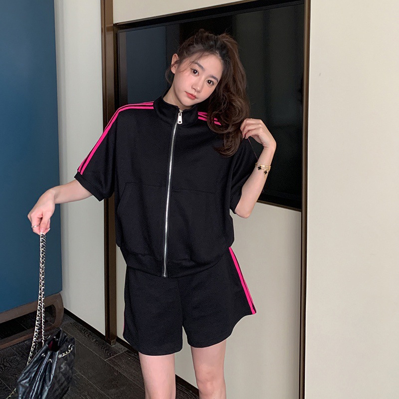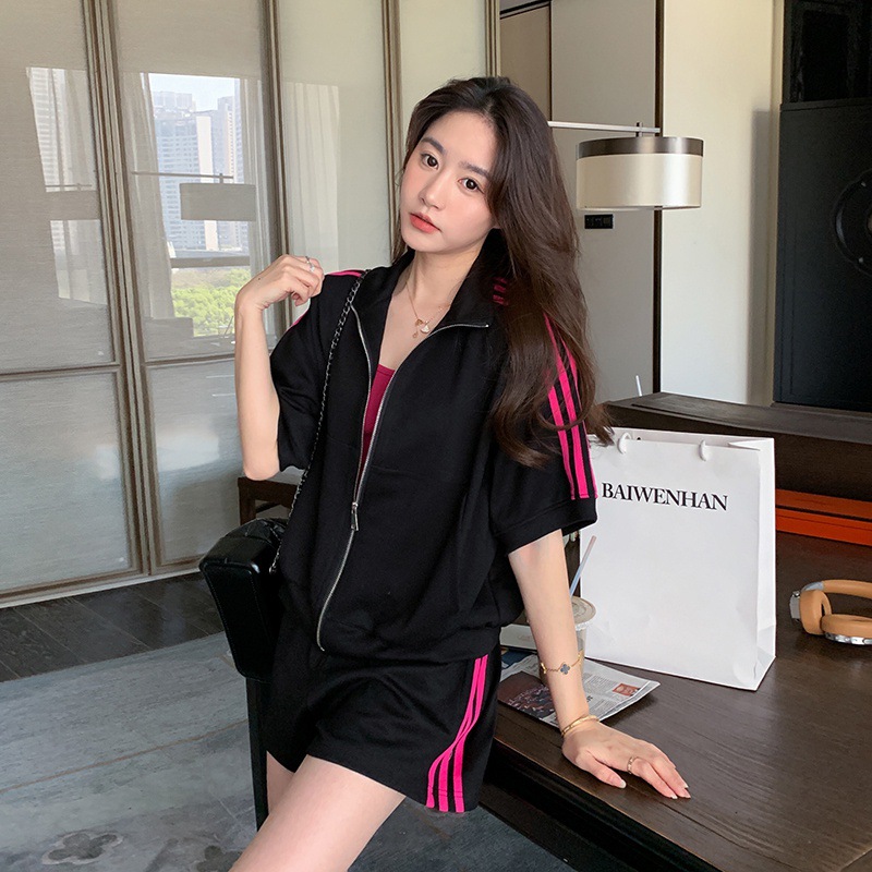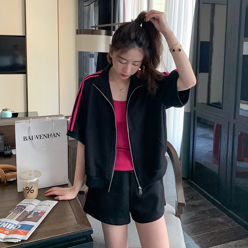 夏新款气质时尚减龄活泼运动服套装女卫衣松紧阔腿短裤两件套