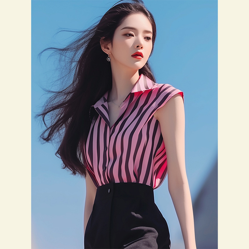 夏季新款法式设计绝美上衣复古港风高级感绝美红色无袖衬衫女