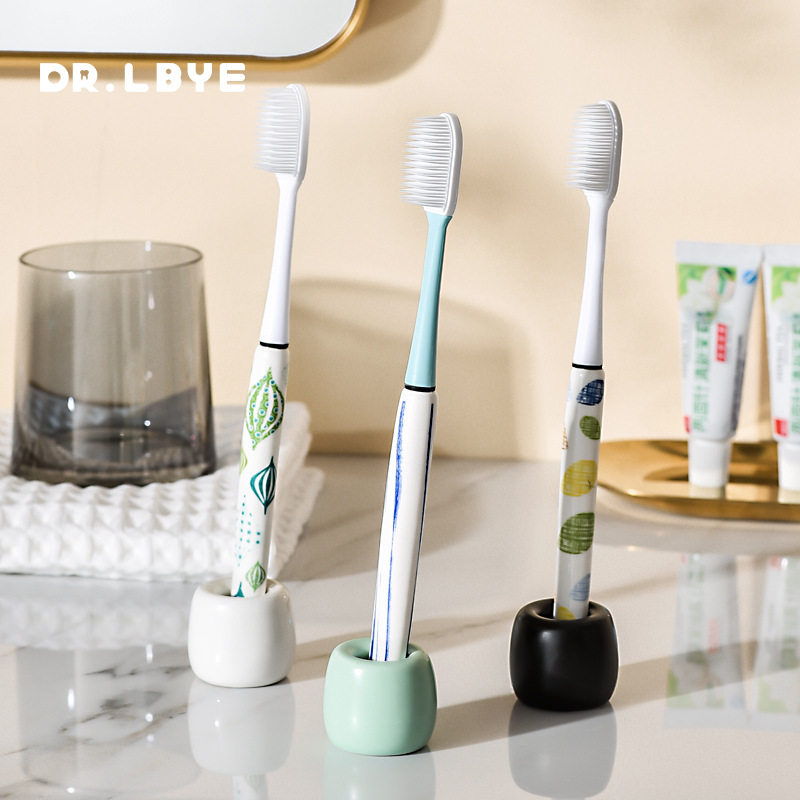 情侣印花陶瓷柄环保小头超细毛纳米成人牙刷 可替换4刷头