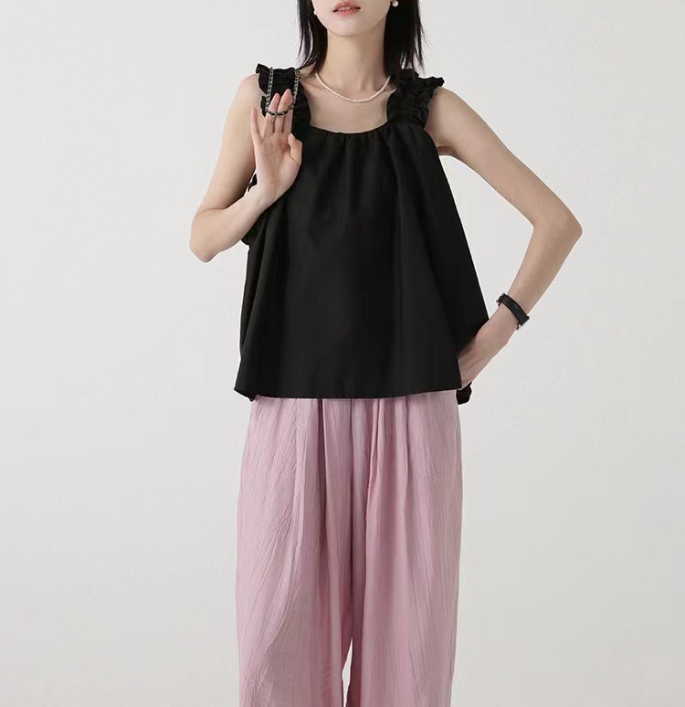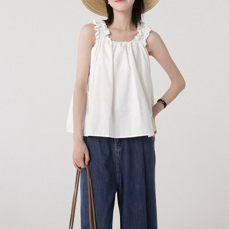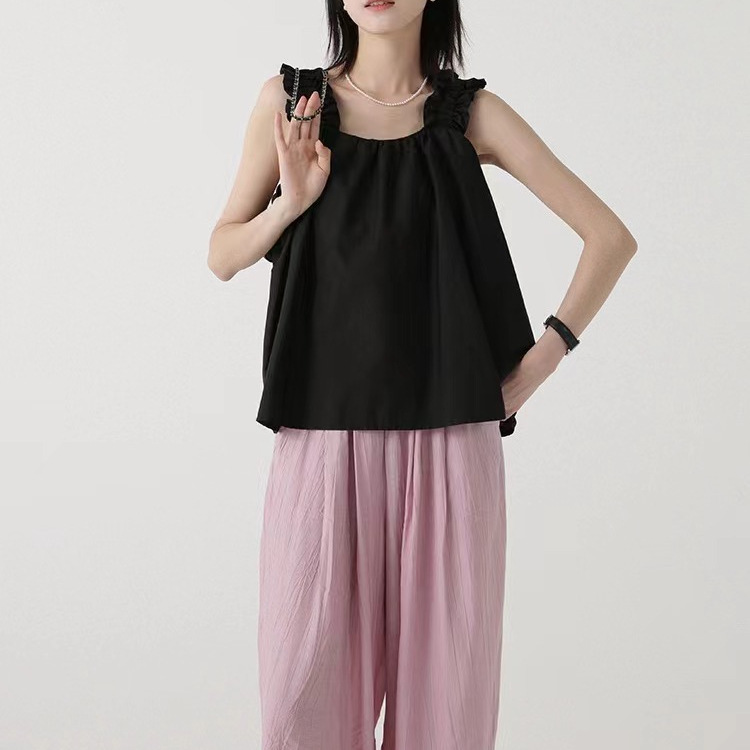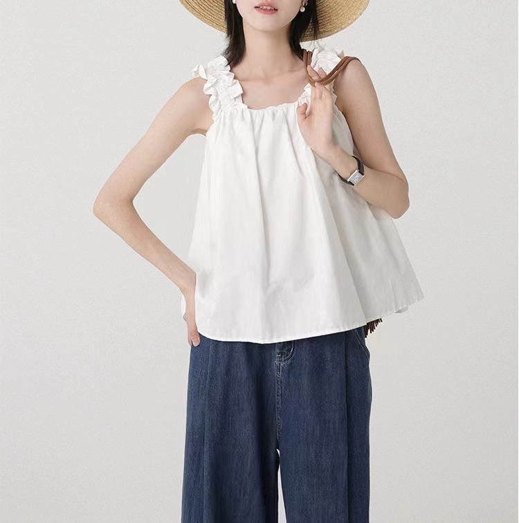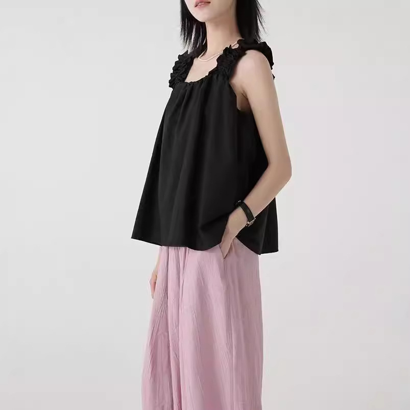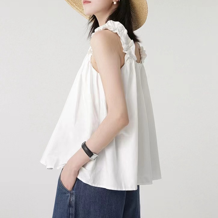 显瘦韩式吊带上衣女夏日多巴胺穿搭木耳边设计感背心外穿无袖小衫