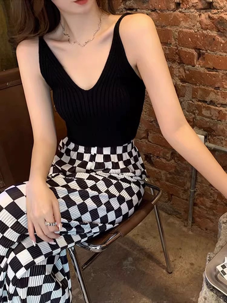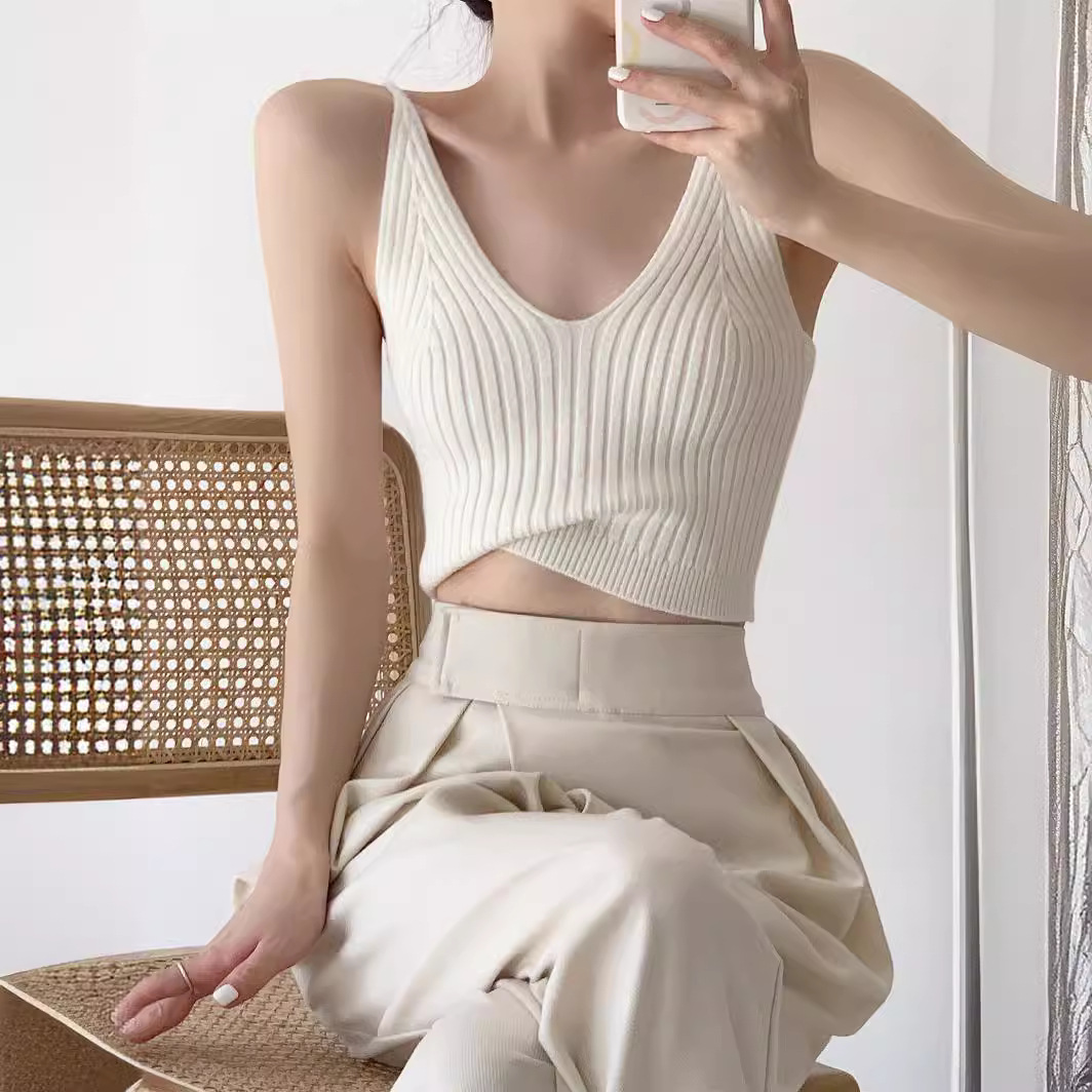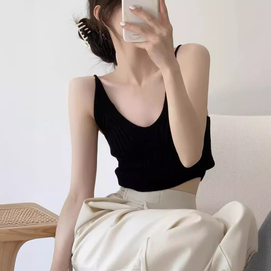 一百分内搭 百搭高腰针织背心女内搭打底v领短款吊带上衣