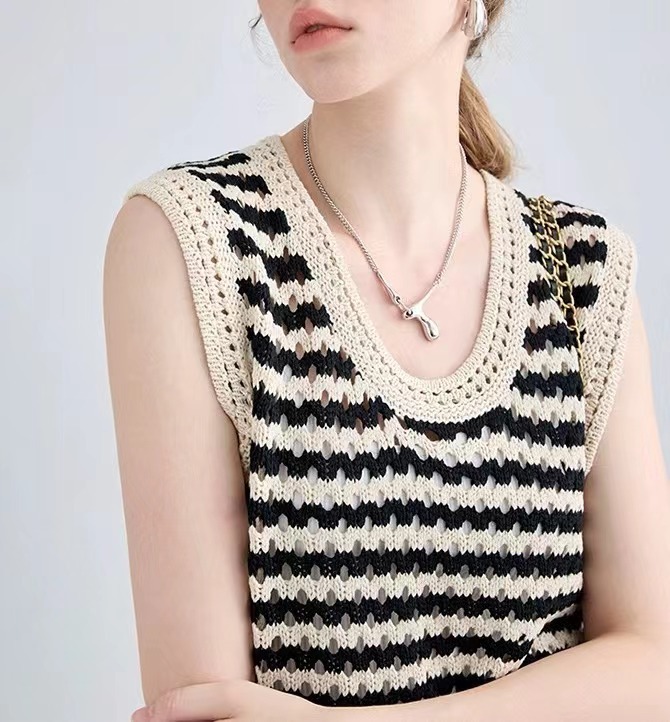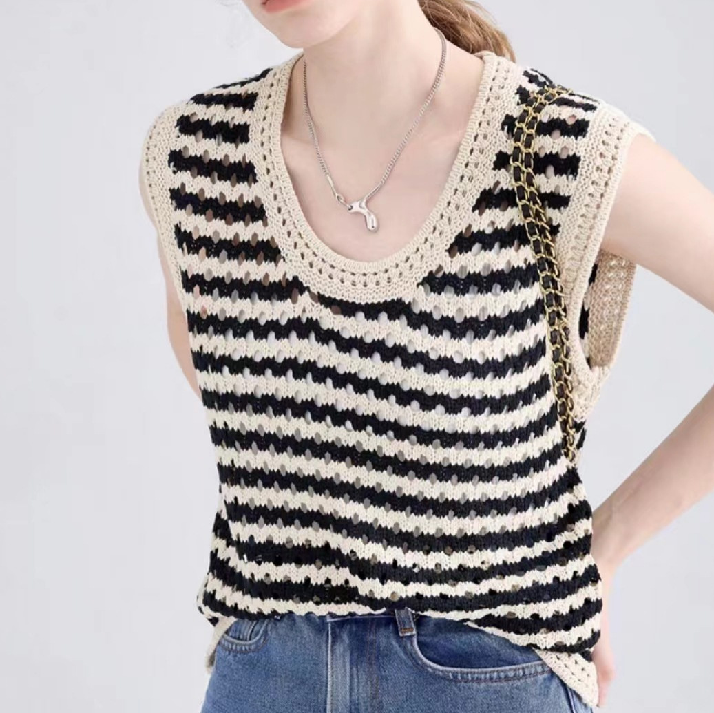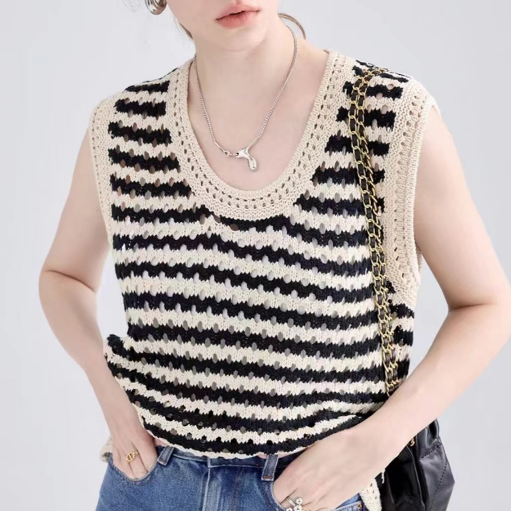 条纹针织吊带小背心女夏外穿镂空设计感小众无袖马甲
