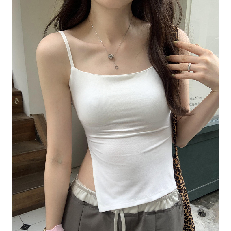 设计感辣妹带胸垫吊带背心女夏季新款开叉修身显瘦内搭上衣