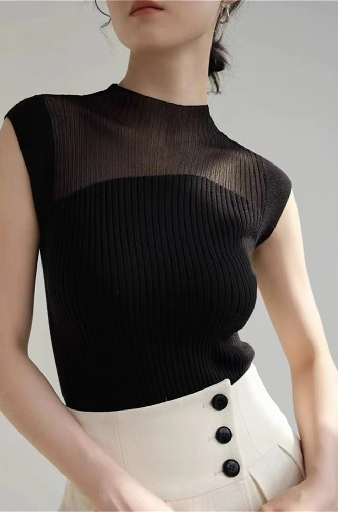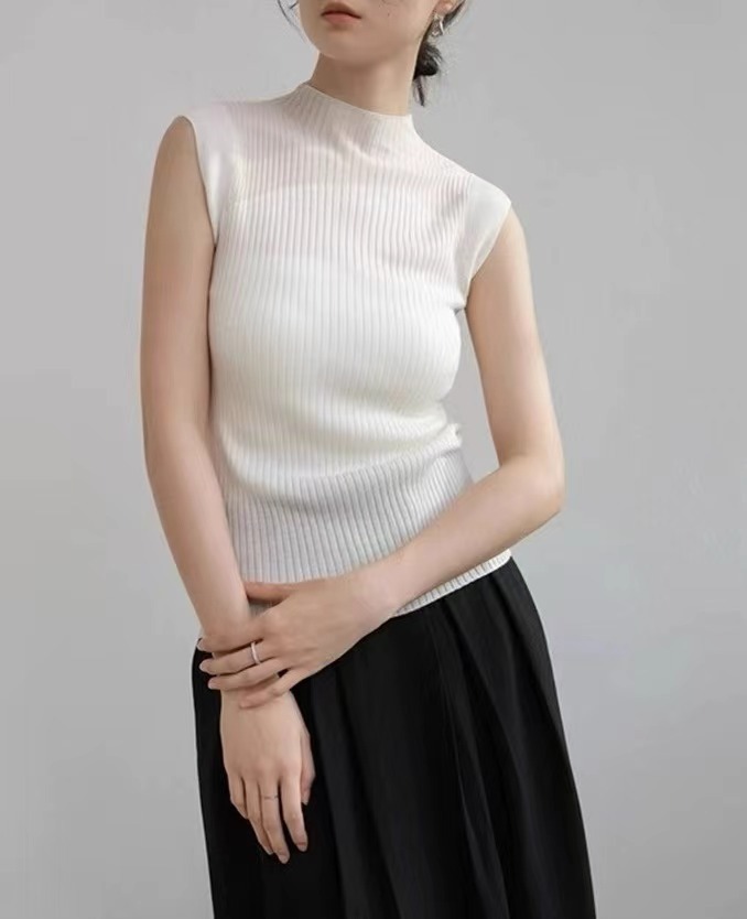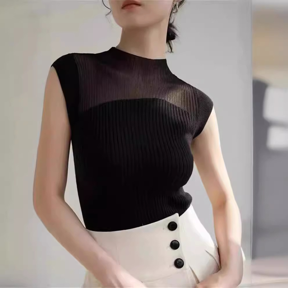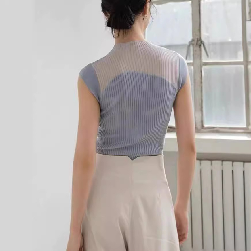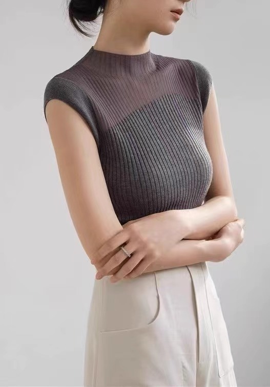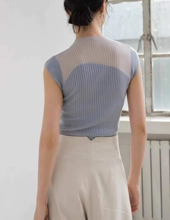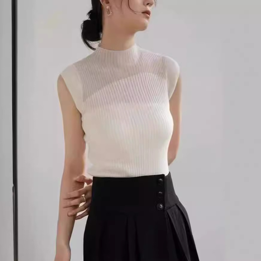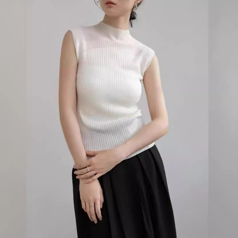 法式灰色短款小飞袖无袖背心针织衫上衣女夏修身正肩短袖冰丝t恤