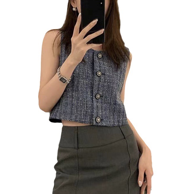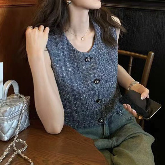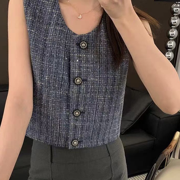 春夏季新款质感拉满编织小香风无袖圆领休闲气质背心马甲