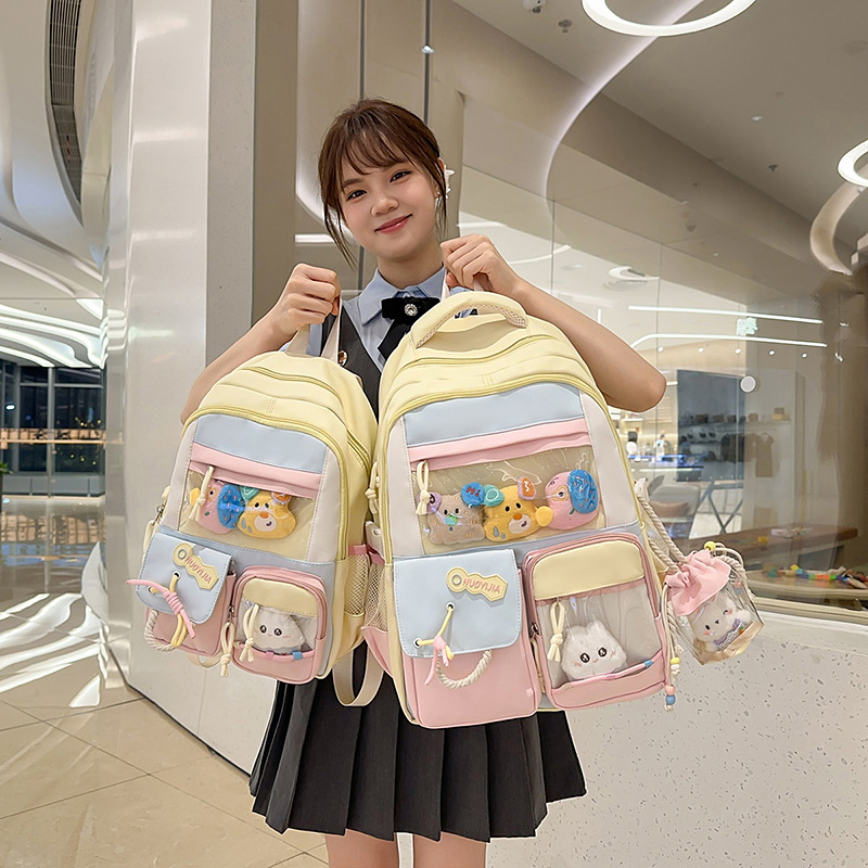 可爱小书包撞色多巴胺风格背包大容量轻便户外休闲双肩包