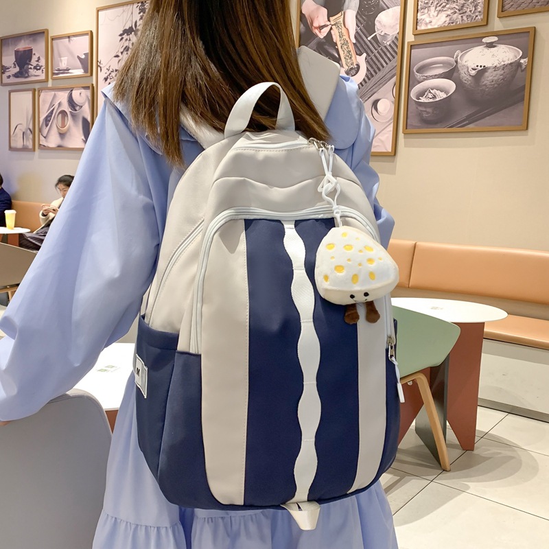 时尚撞色休闲双肩包新款女书包女大学生初中女生双肩背包女